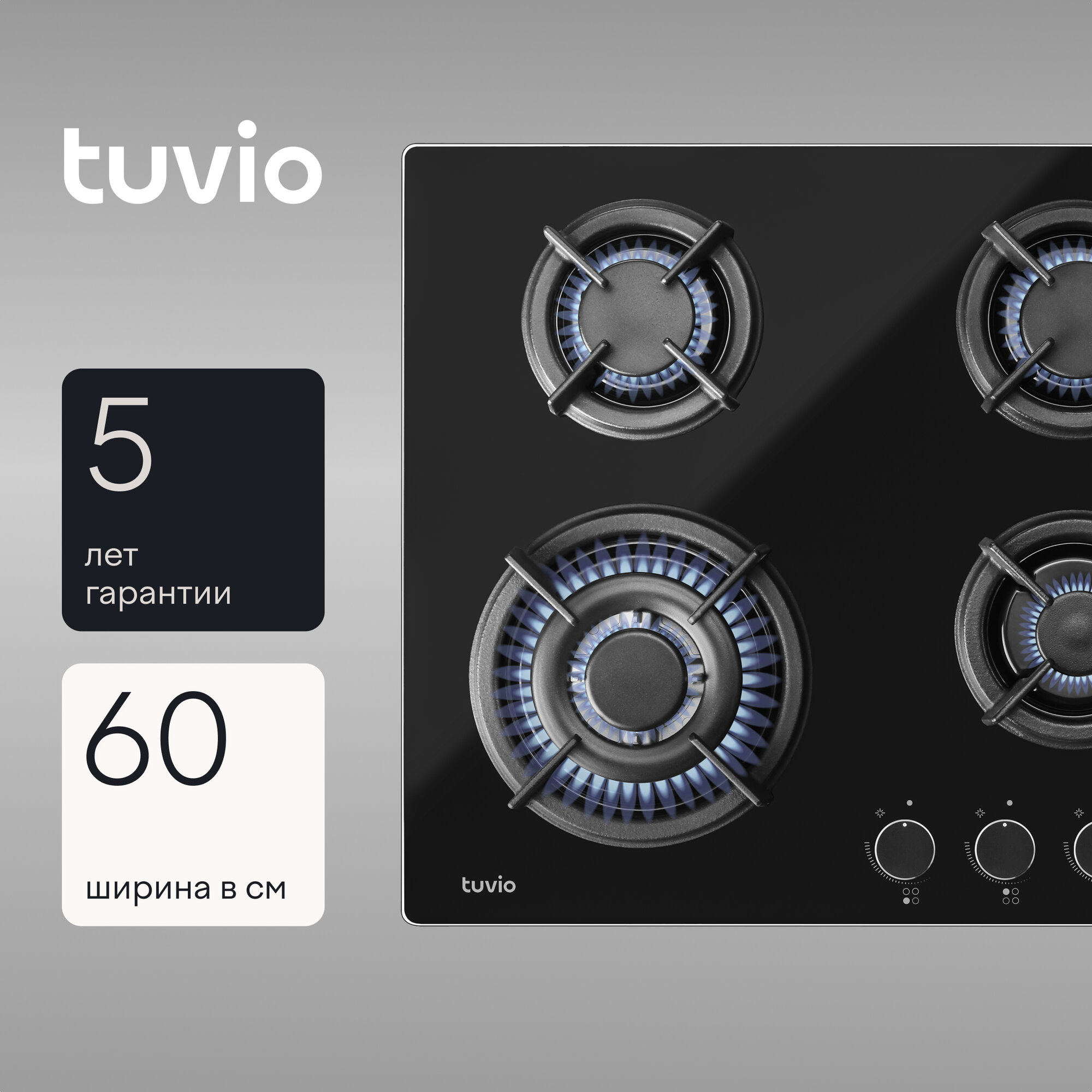 Газовая варочная панель Tuvio HGS648DBGA1, черное стекло интересное: