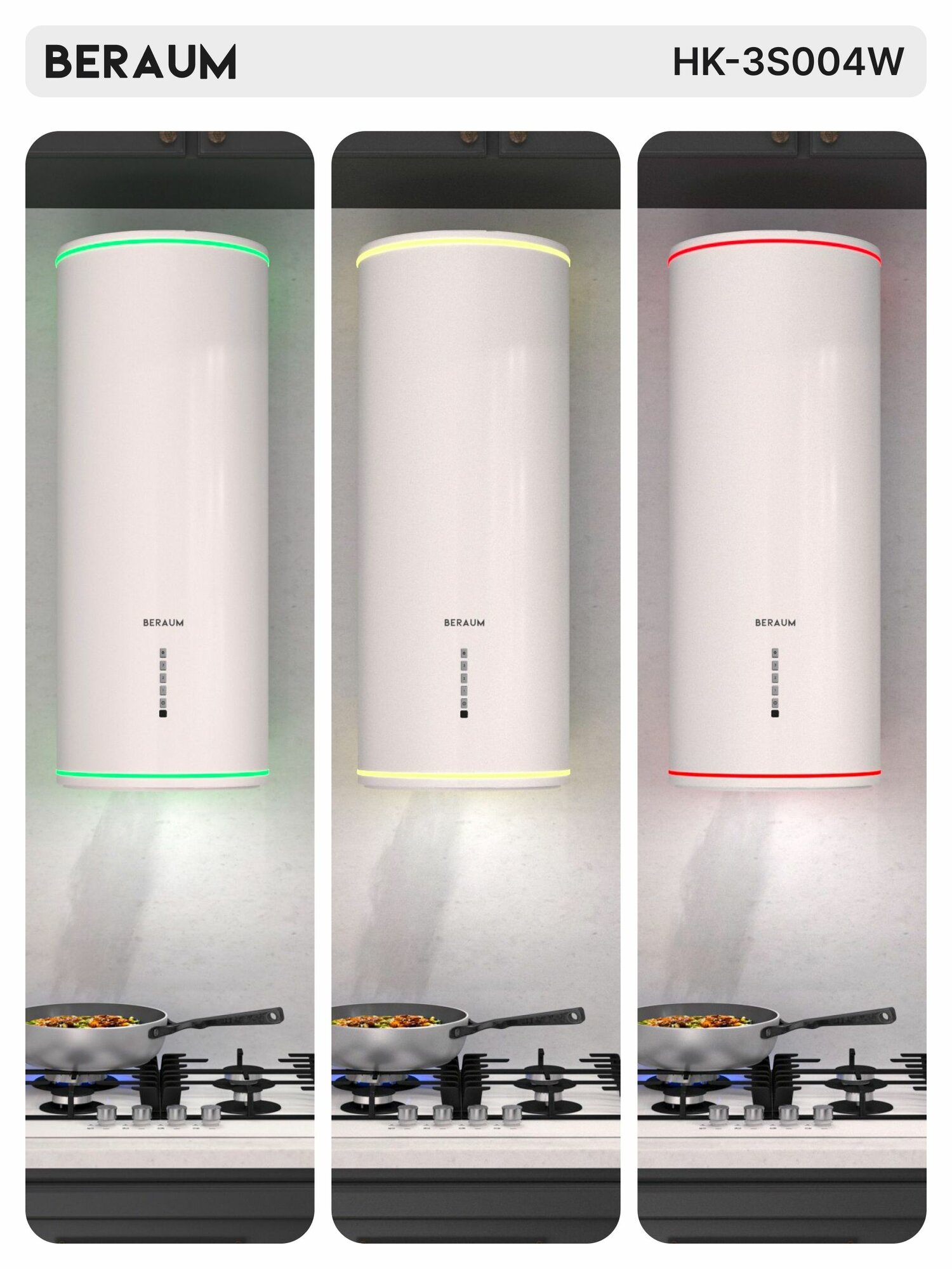 Вытяжка кухонная цилиндрическая Beraum HK-3S004W c RGB-подсветкой, инверторным двигателем и дистанционным управлением интересное: