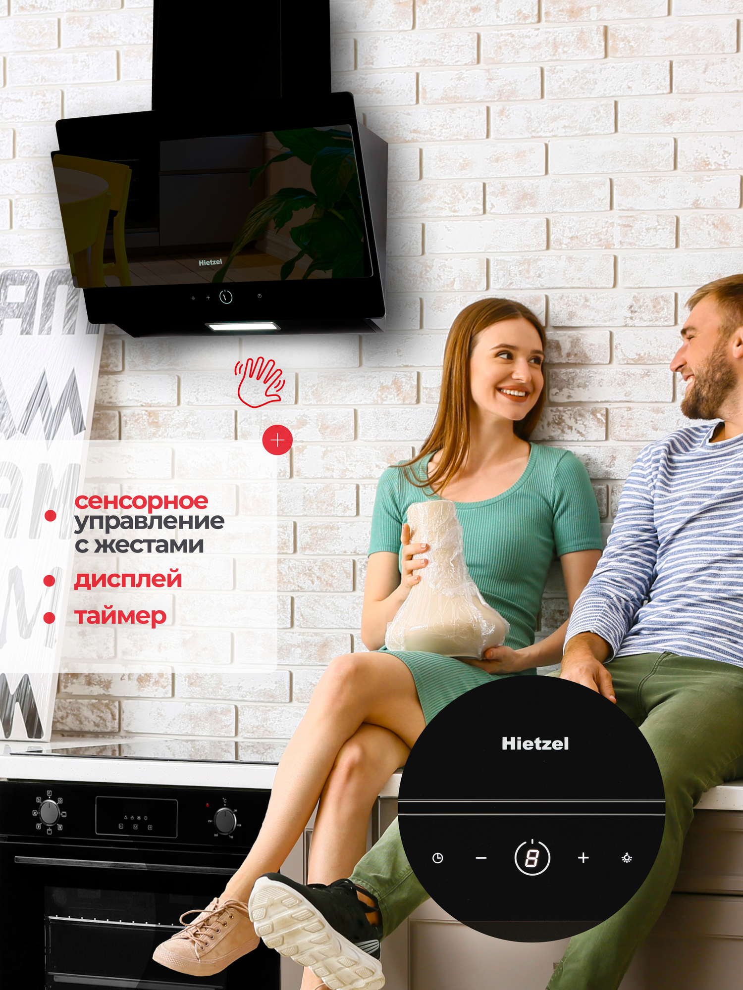 Наклонная вытяжка для кухни черная 50 см Hietzel CHV 5029G BL сенсорная, управление жестами интересное:
