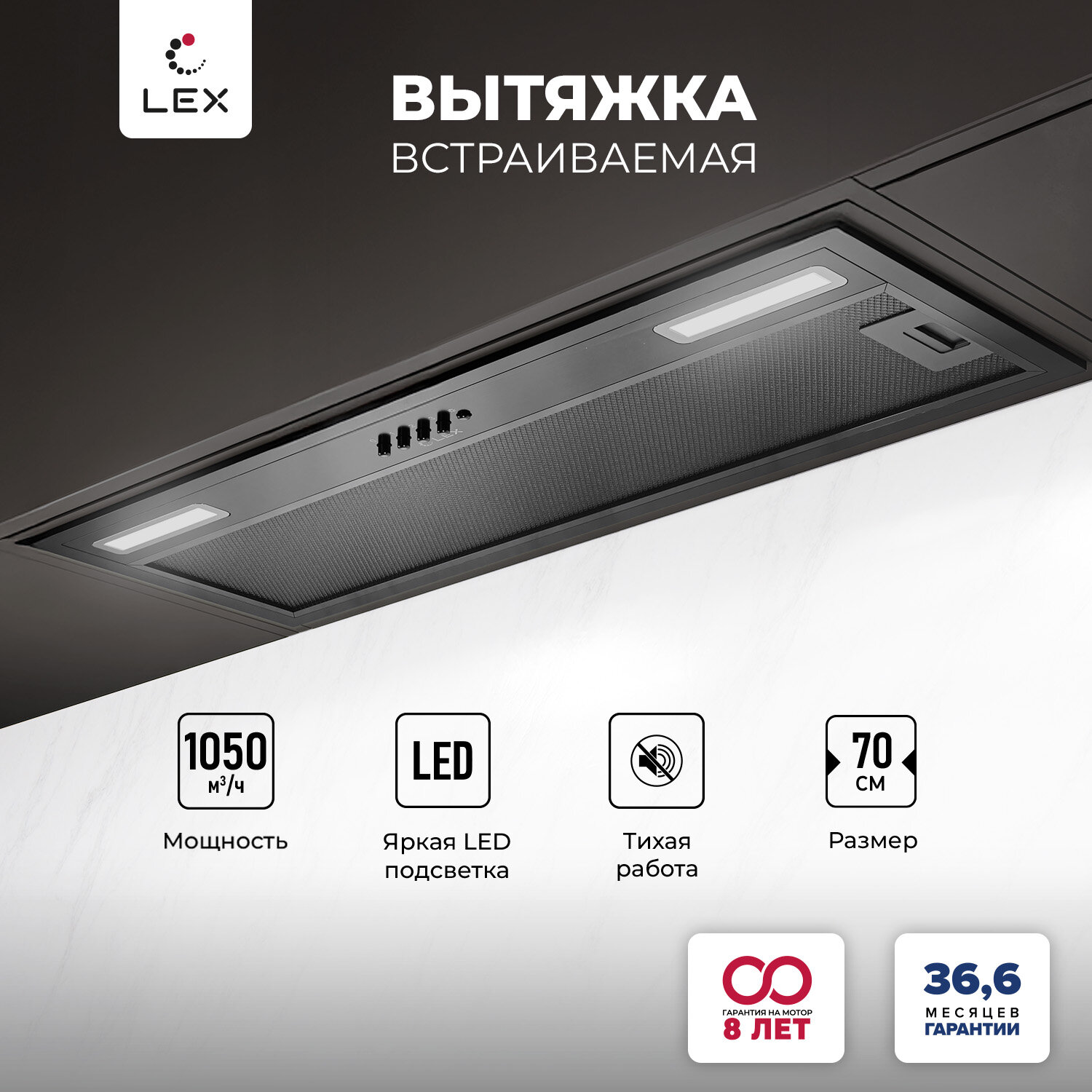Вытяжка кухонная встраиваемая LEX HYPER 900 BBL, отделка окрашенная сталь, 3 скорости, кнопочное управление интересное:
