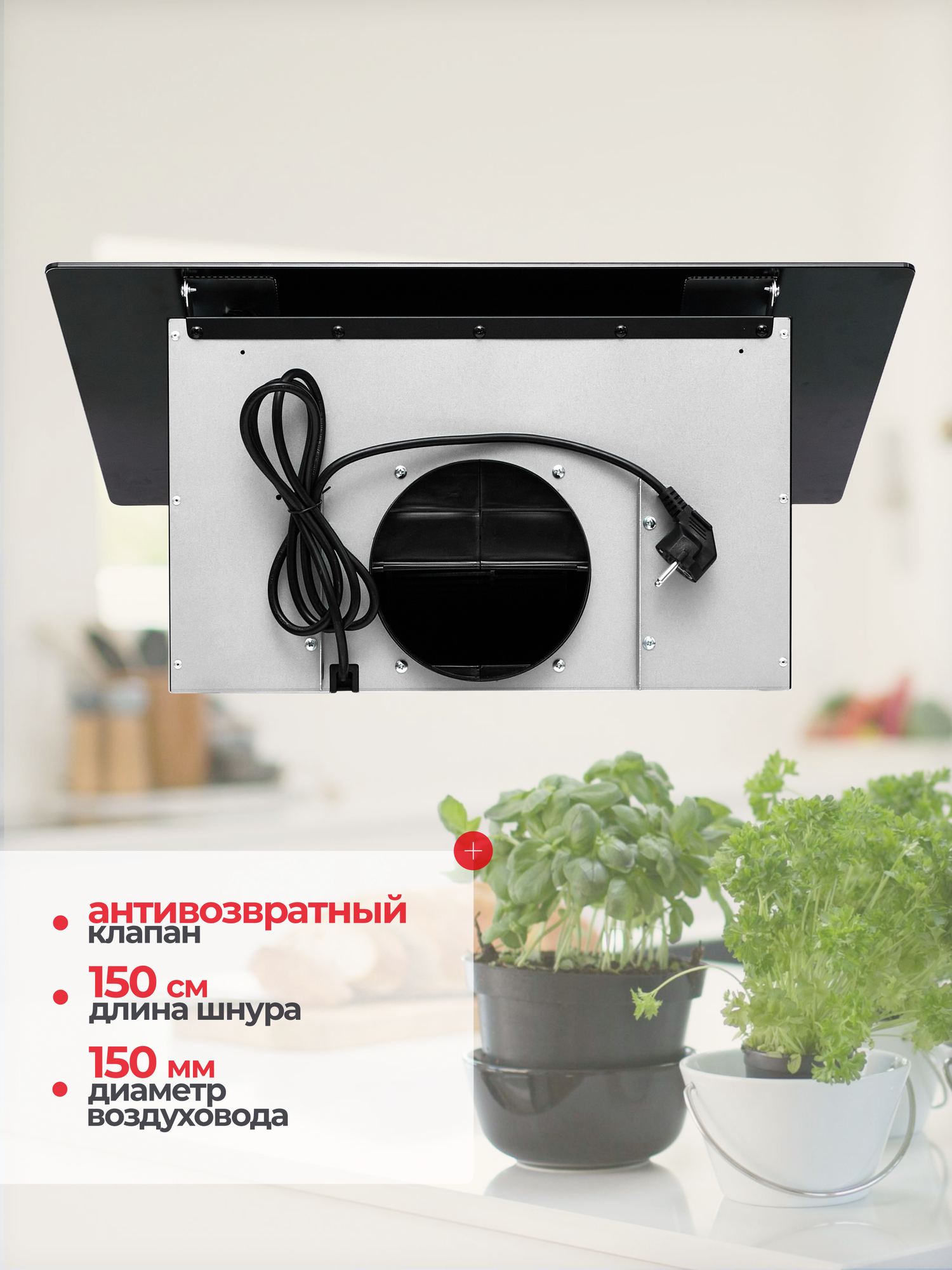 Наклонная вытяжка для кухни черная 60 см Hietzel CHV 6022S BL слайдерная, управление жестами интересное: