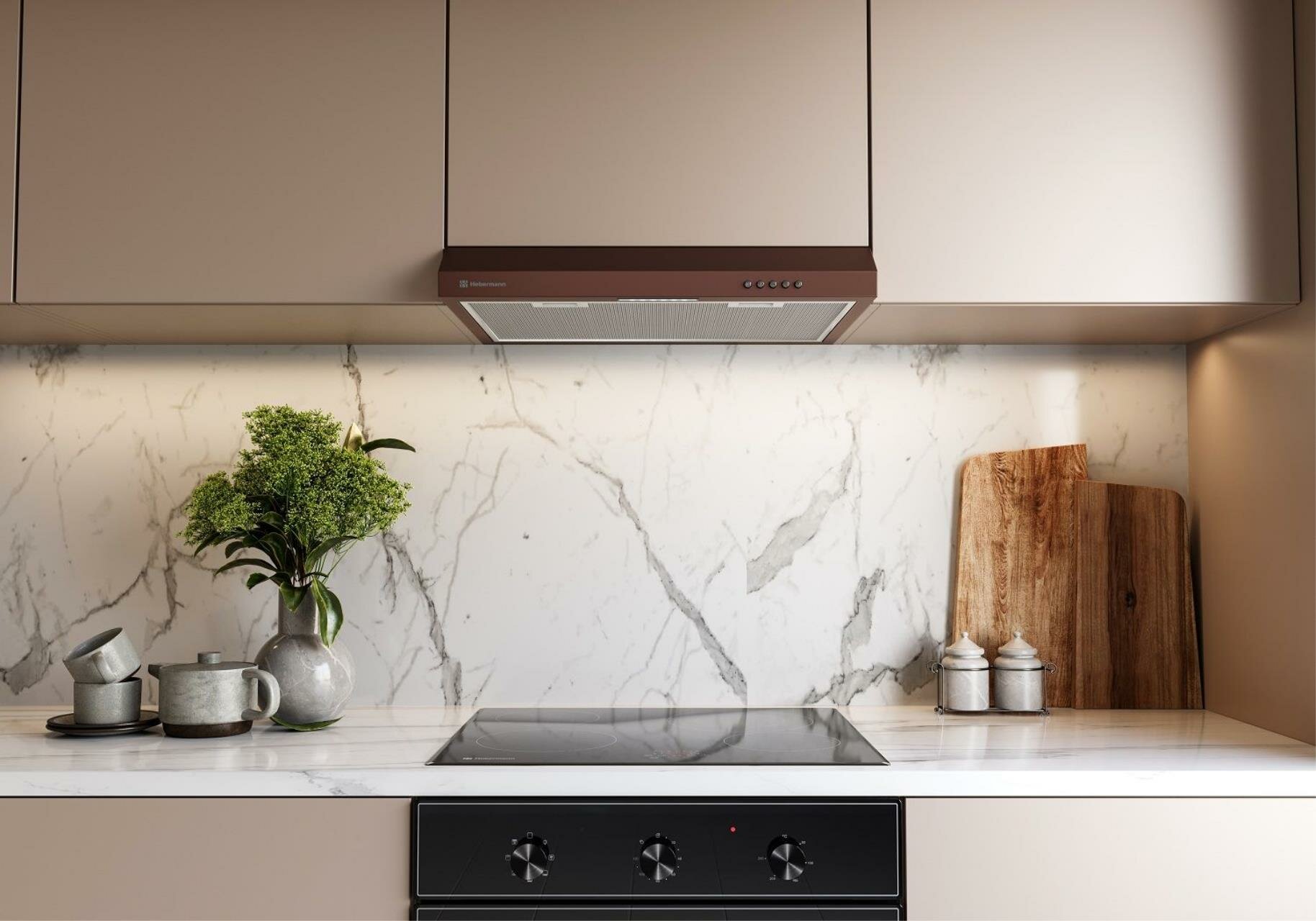 Купить Плоская кухонная вытяжка HBUH 60.2 BR, Производительность 540 м/ч, ширина встраивания 60 см,3 скорости, кнопочное управление, коричневая