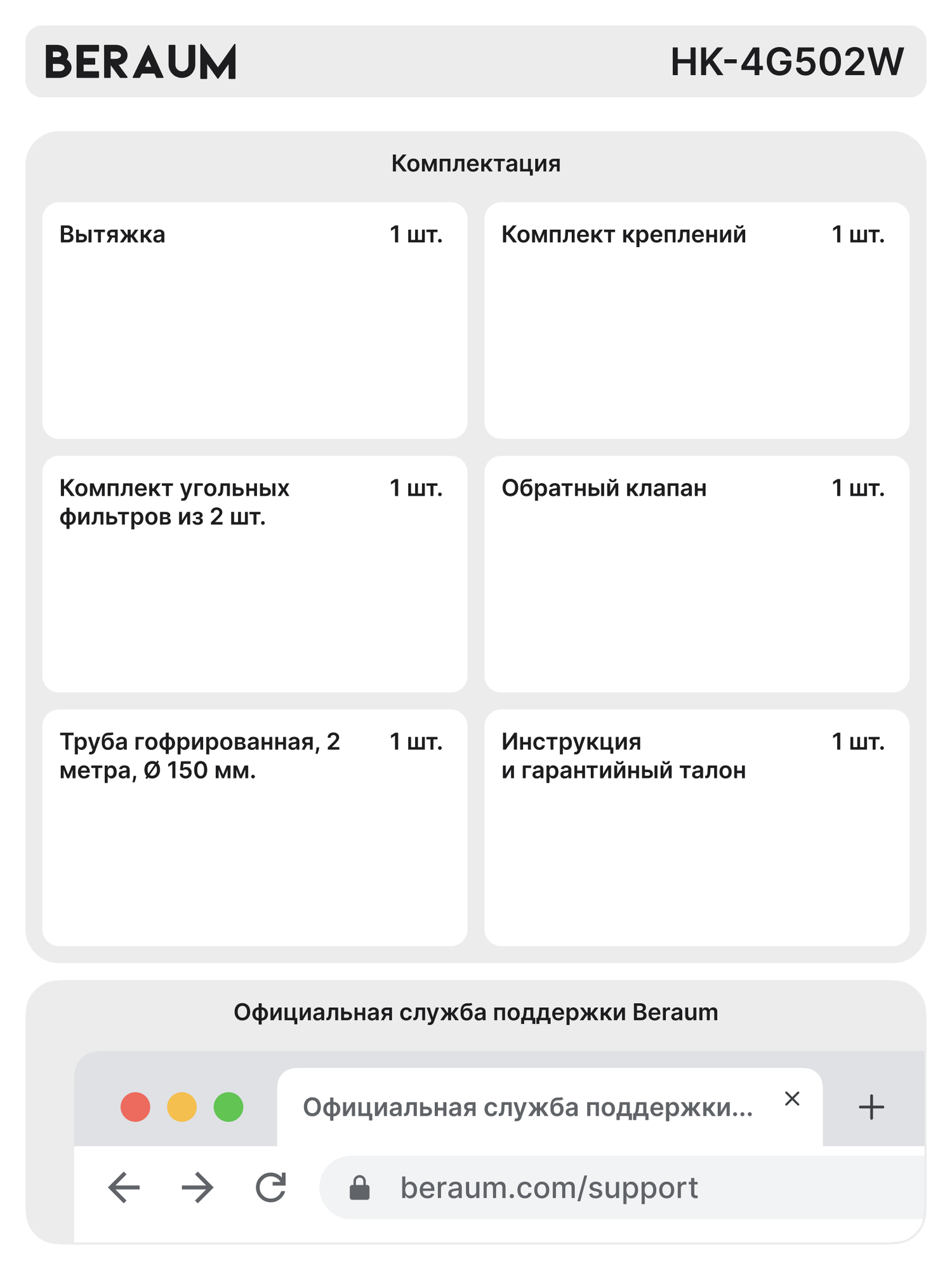 Вытяжка кухонная Beraum HK-4G502W, сенсорное управление, наклонная, белая интересное: