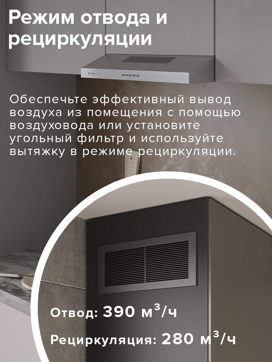 Кухонная вытяжка плоская Libhof LF-2350 silver / тройной алюминиевый жировой фильтр / механическое управление интересное: