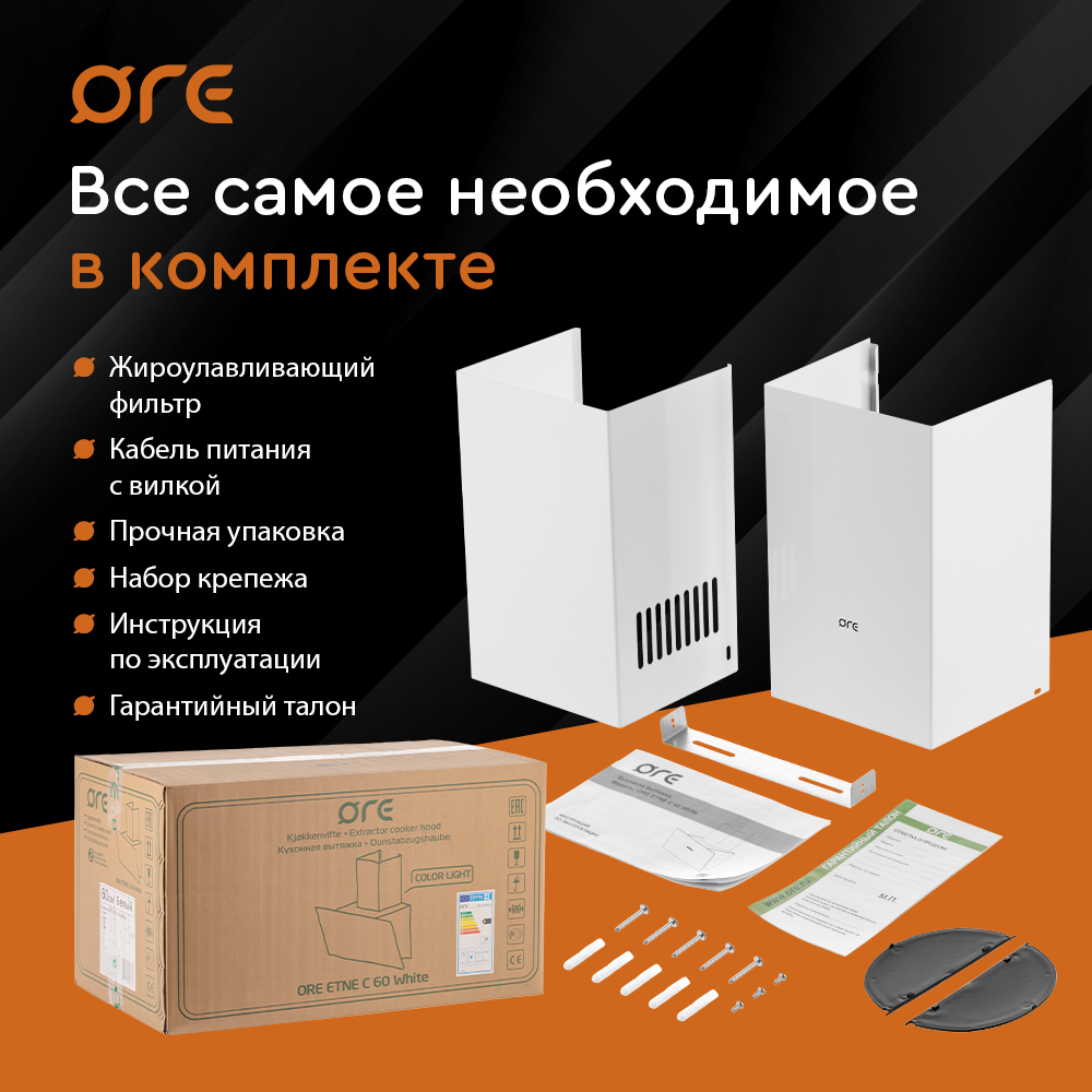 Вытяжка ORE Etne С 60 WHITE, цвет белый, ширина 60 см, 3 скорости интересное: