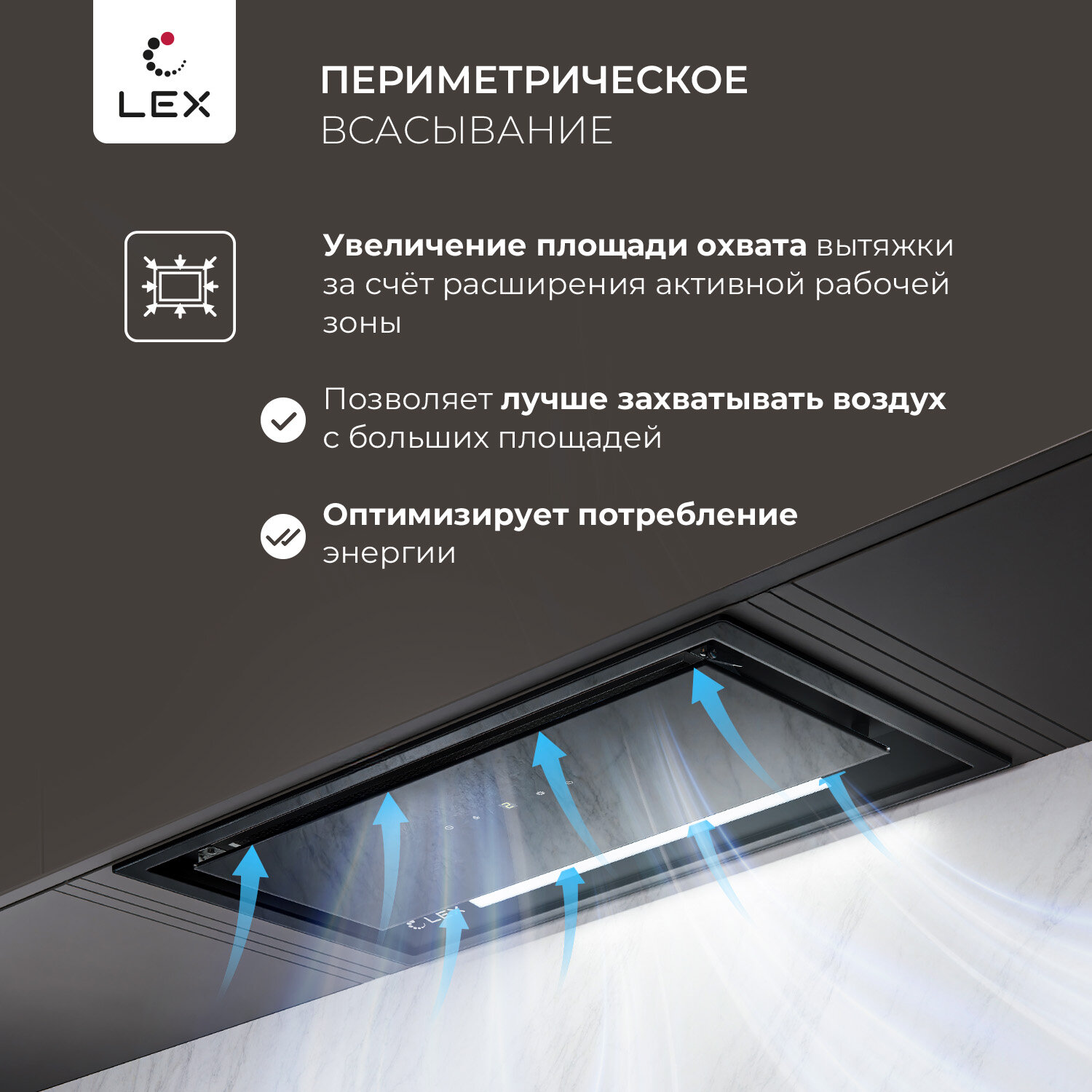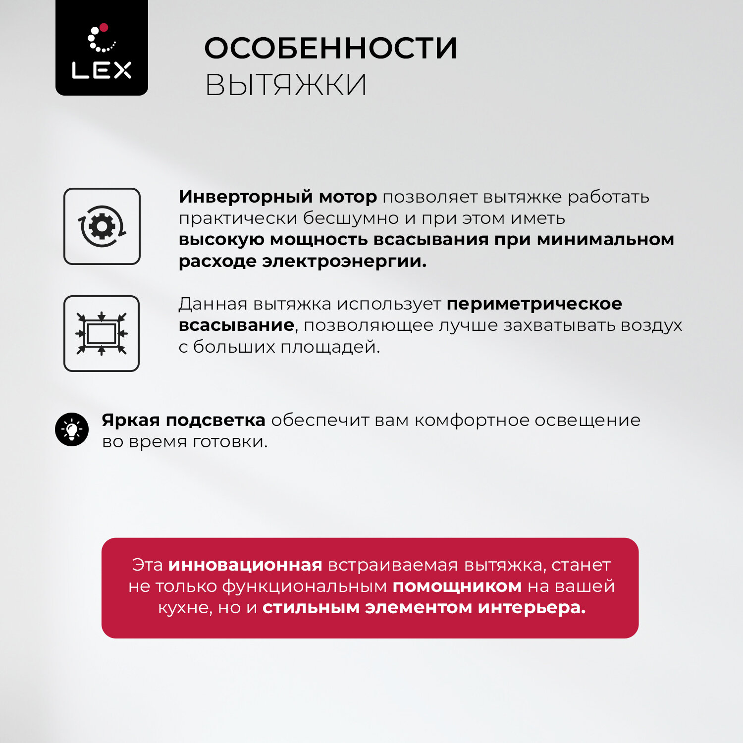 Вытяжка кухонная встраиваемая LEX HYPER 600 GS Inverter BL, отделка стекло, управление сенсорное, пульт д/у, таймер, 3 скорости, инверторный мотор. интересное: