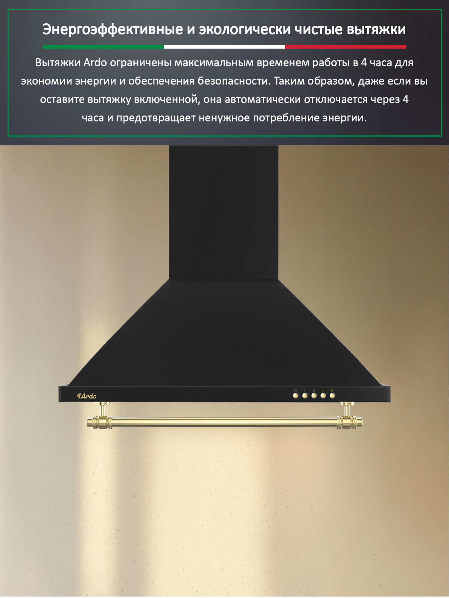 Купить Вытяжка Ardo Дизайн Ретро, Мощность 600 м3, 3 скорости, Низкий уровень шума 56 ДБ, отвод и циркуляция, LED освещение