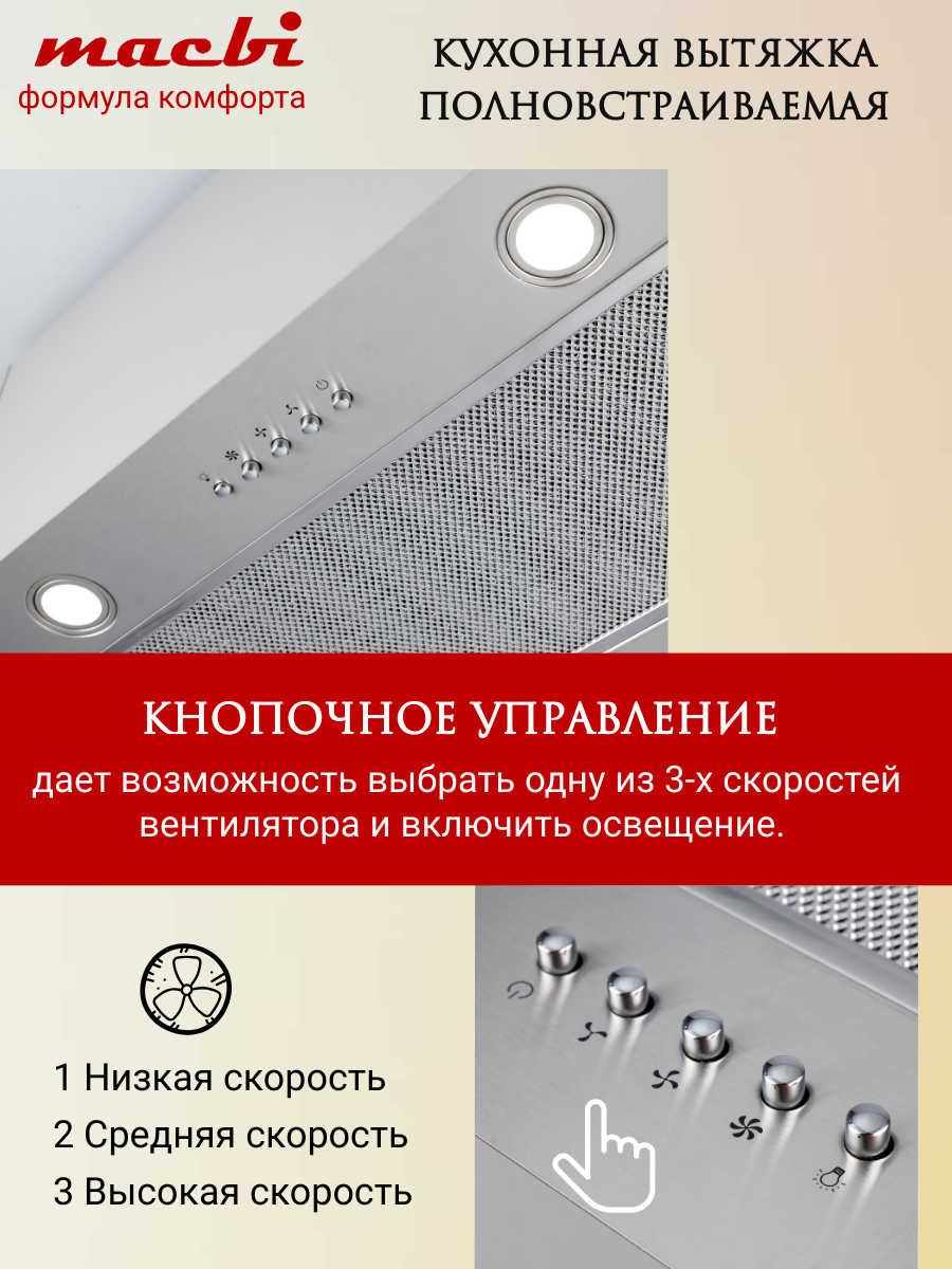 Вытяжка кухонная MACBI B-BOX-60 (INOX) нержавейка /металл, 1200 м3/ч интересное: