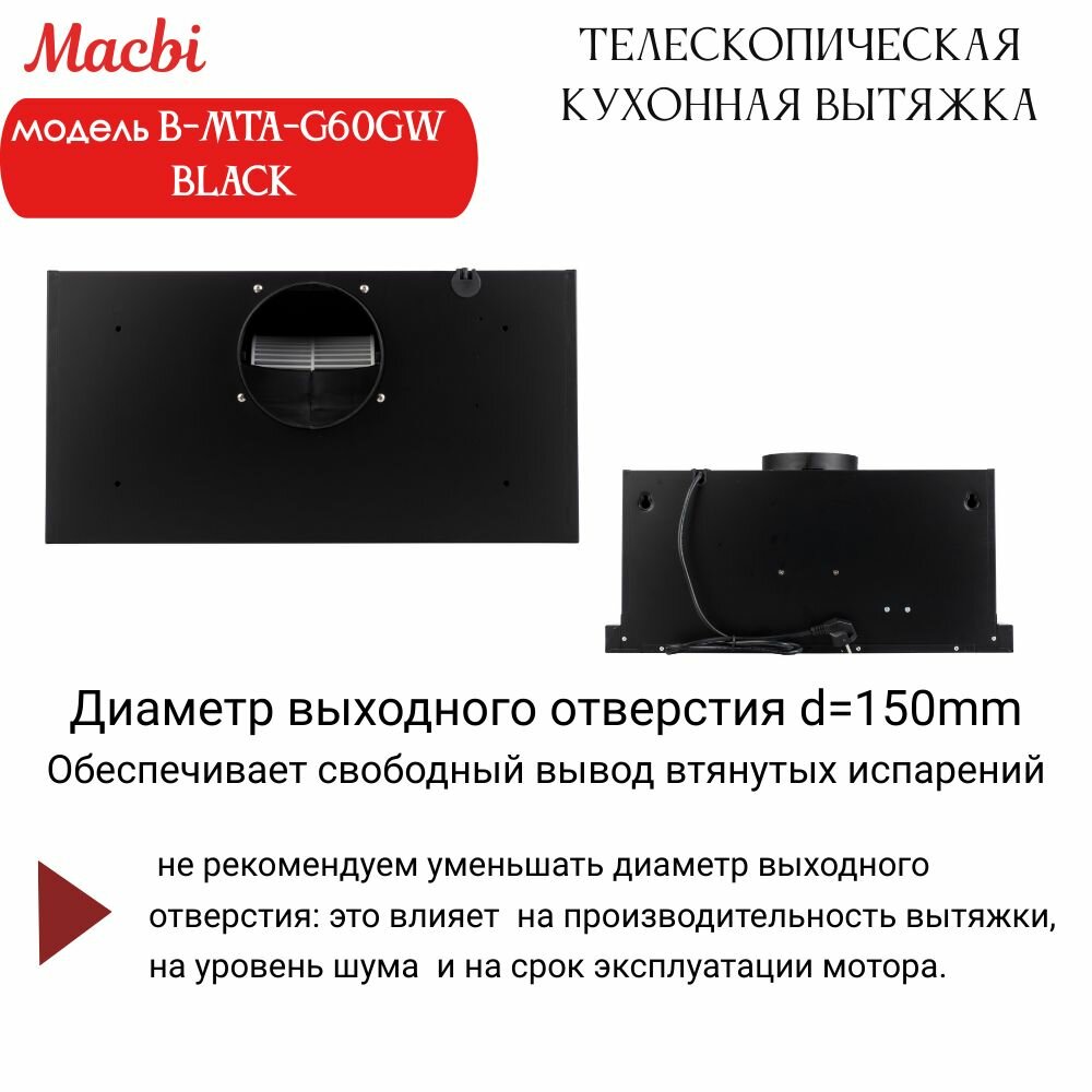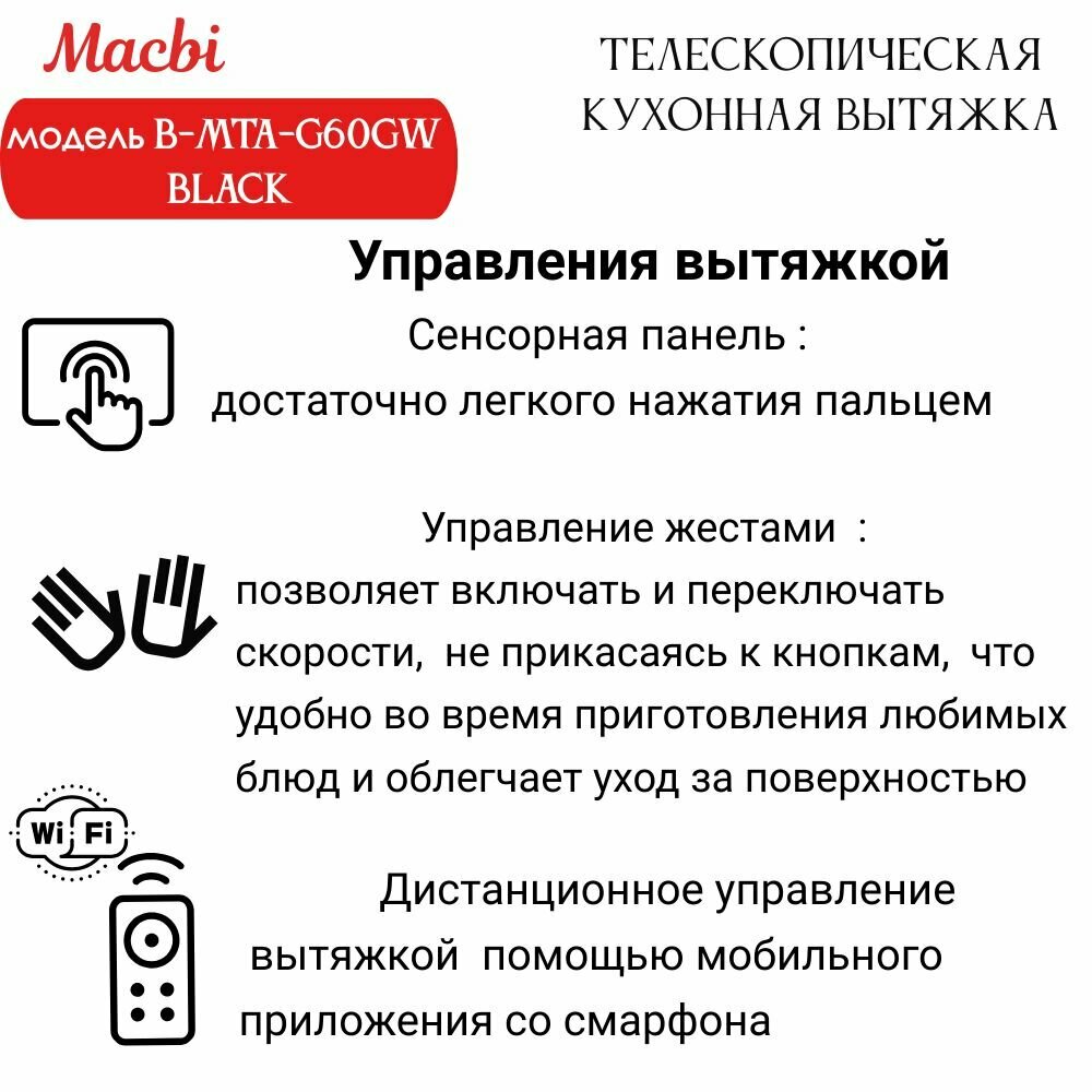 Кухонная вытяжка MACBI B-MTA-G60GW BL1200м3/ч Черная, Жесты+Wi-Fi, выдвижная интересное: