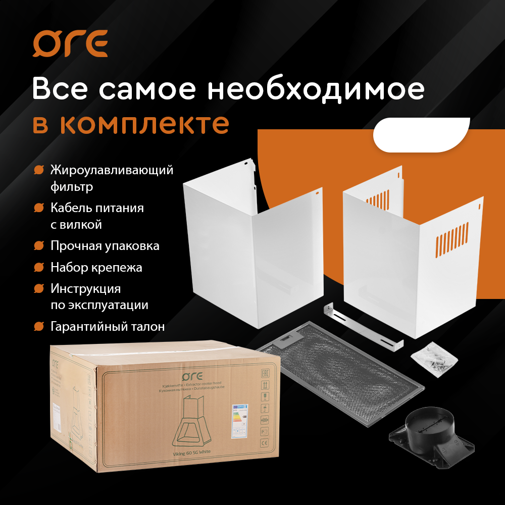 Вытяжка для кухни ORE VIKING 60 SG WHITE, ширина 60 см, 3 скорости, белая интересное:
