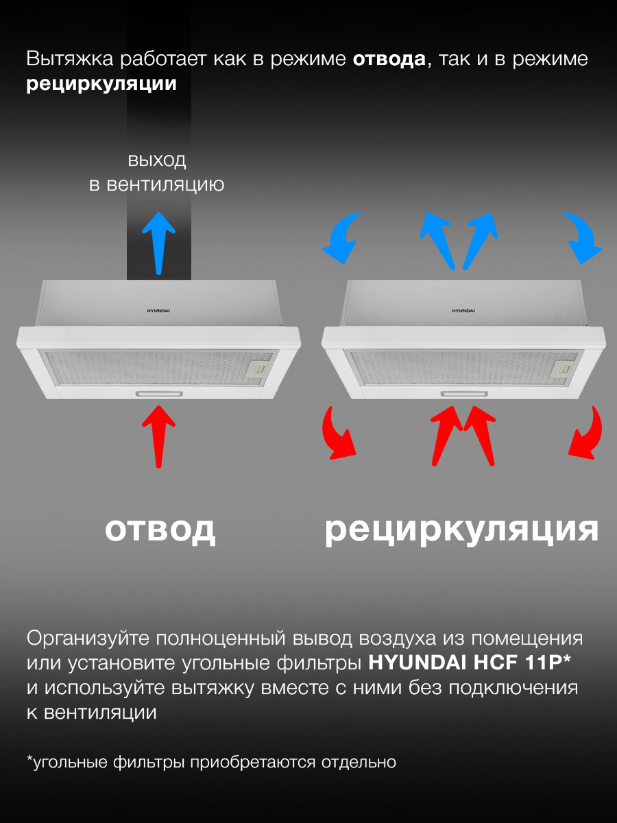 Вытяжка встраиваемая Hyundai HBH 6235 WG белый управление: кнопочное интересное: