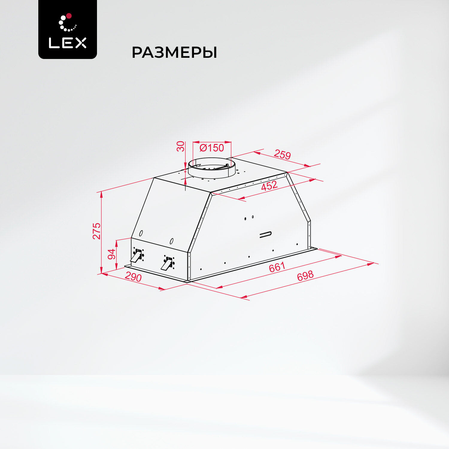 Вытяжка кухонная встраиваемая LEX HYPER 600 Inverter BL, отделка окрашенная сталь, 3 скорости, кнопочное управление, инверторный мотор. интересное: