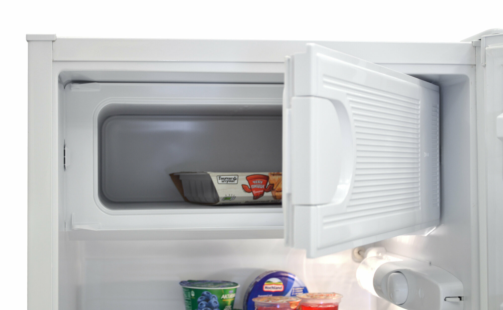 Удобные полки. Небольшая морозильная камера. Цвет белый. |
