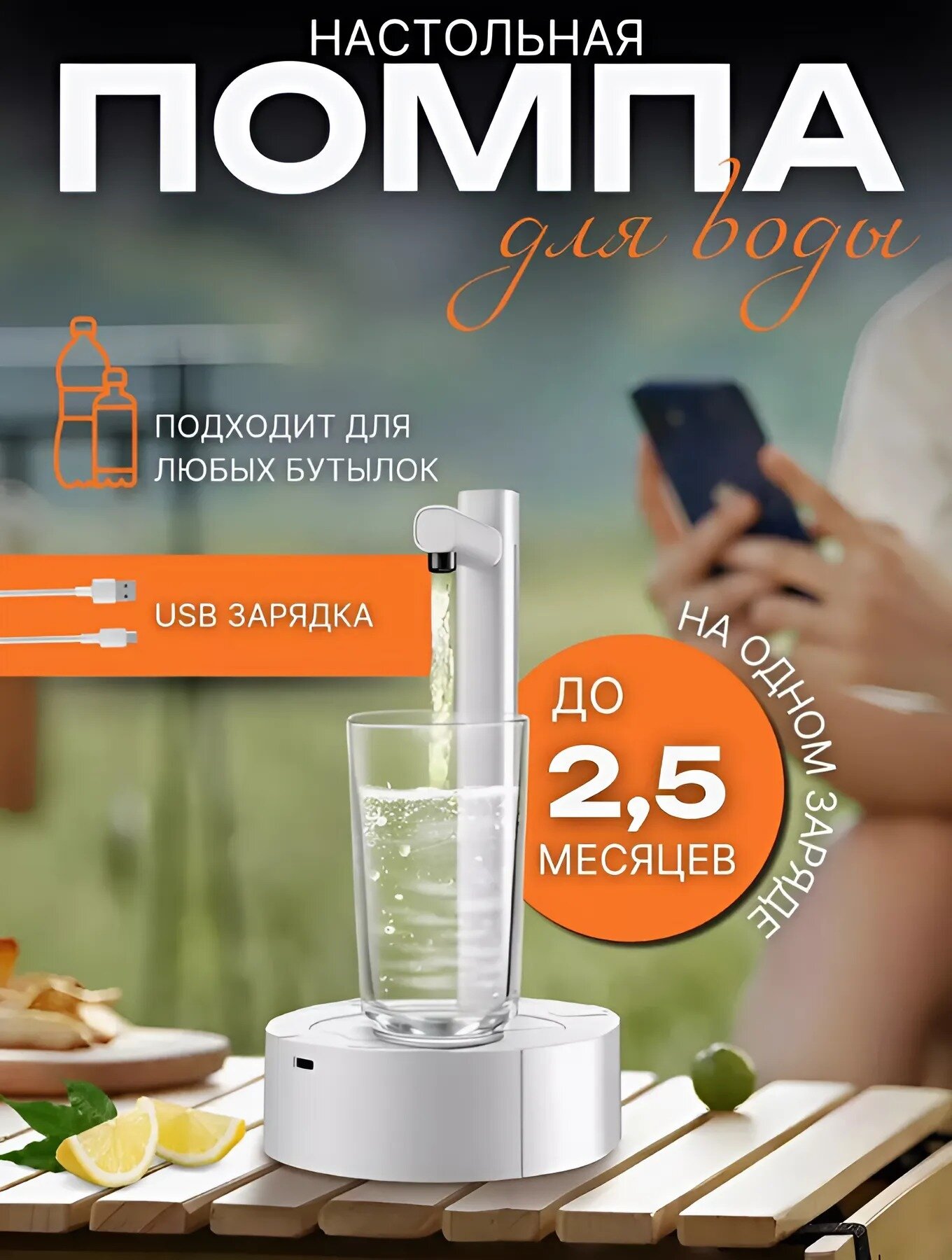 Помпа для воды электрическая настольная , диспенсер для воды на аккумуляторе , цвет белый интересное: