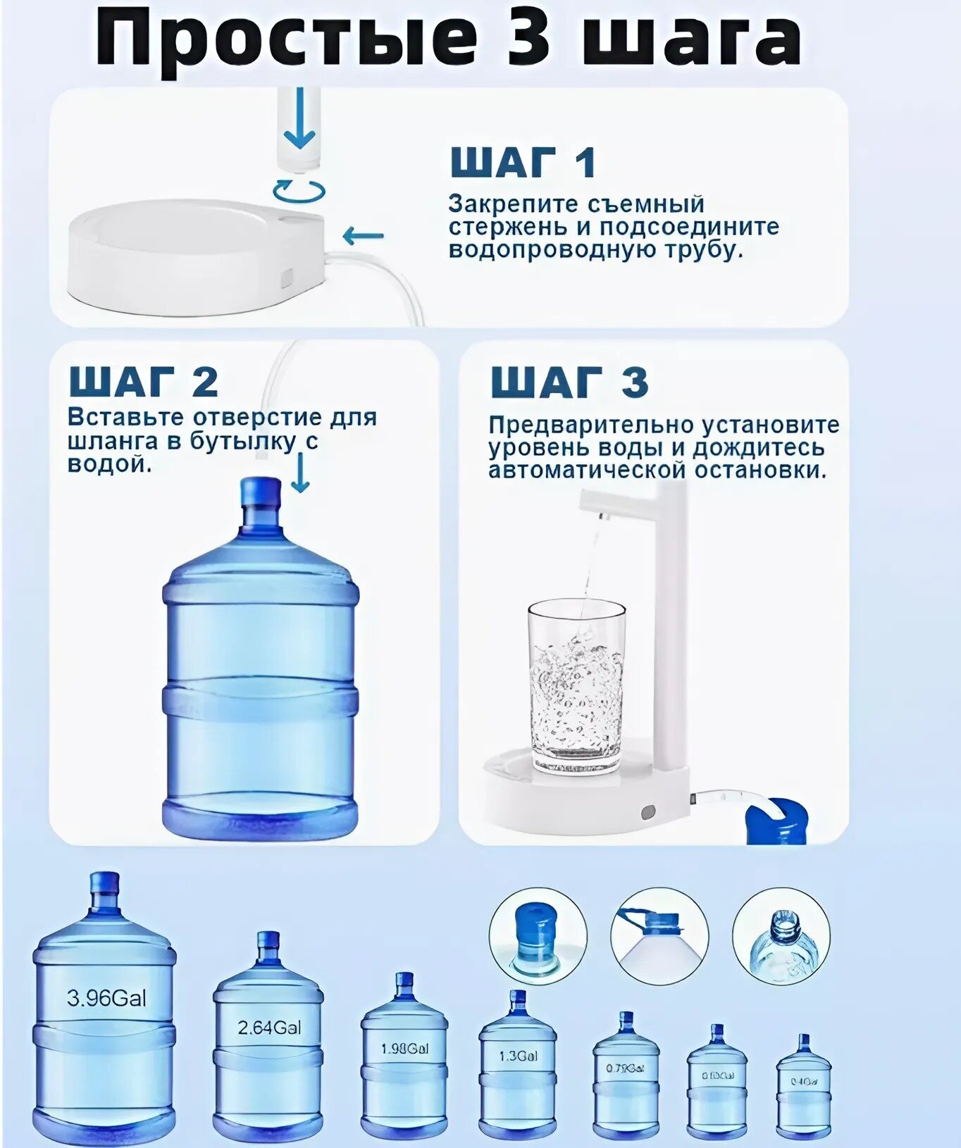 Электрическая помпа для воды , установка на бутылку, белая BM