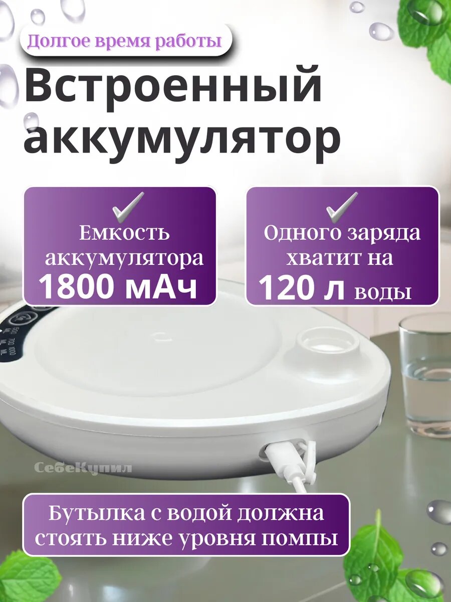 Электрическая помпа для воды , установка на бутылку, белая BM