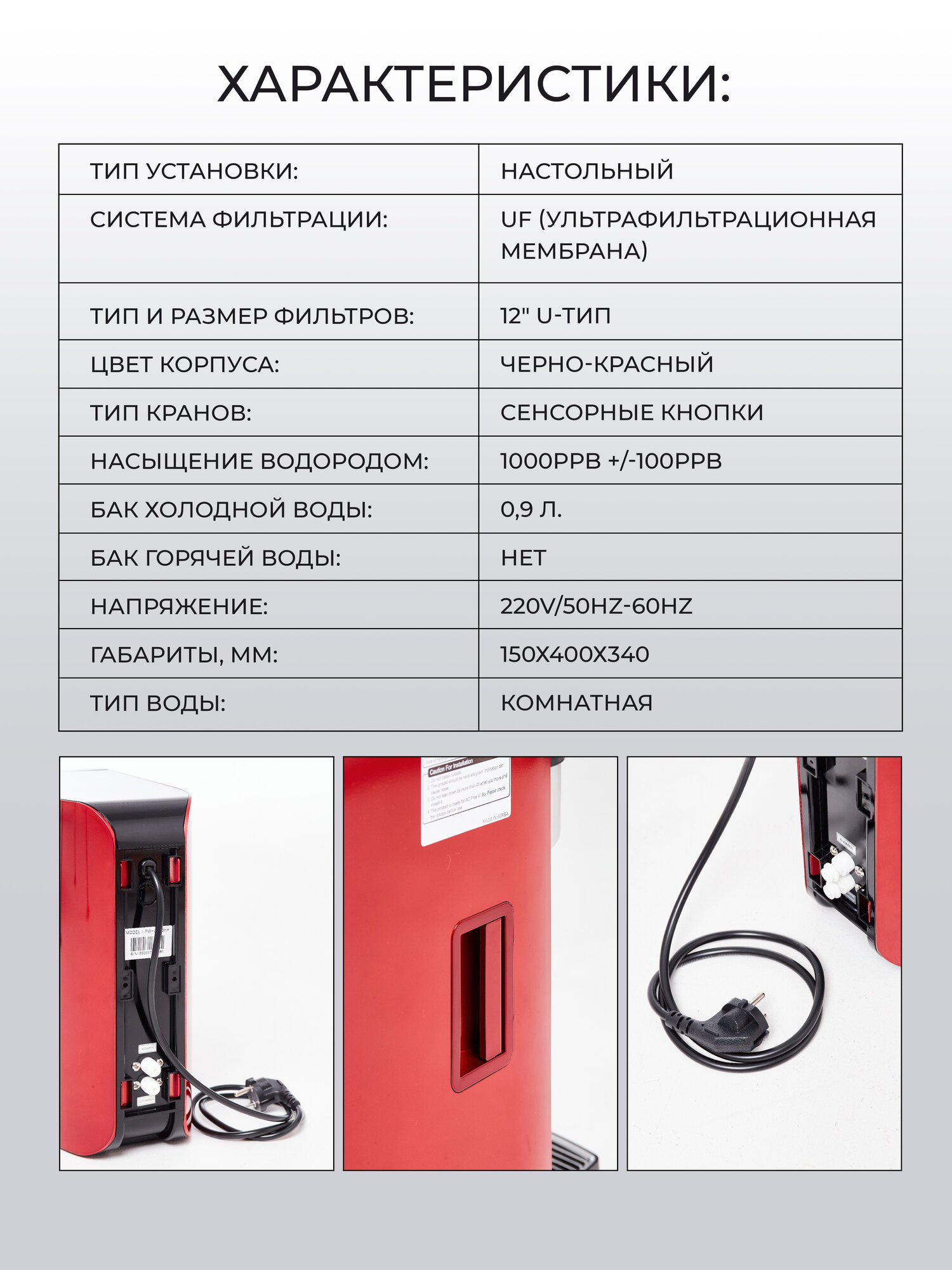 | Дополнительная информация | Удобная установка; Всегда под рукой чистая вода и с водородом в том числе |