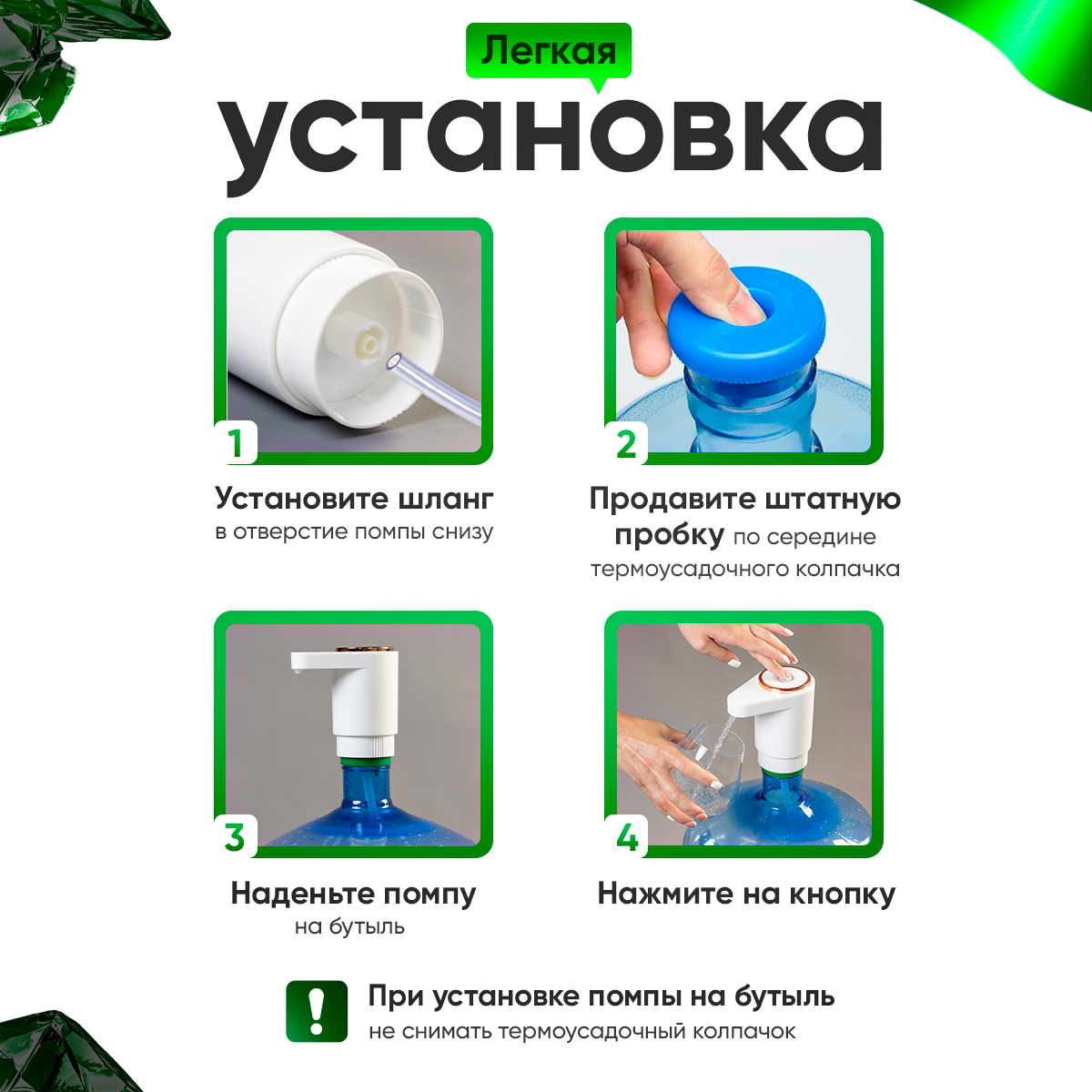 | Дополнительная информация | нельзя снимать защитный клапан с бутыли, если его снять помпа не будет держаться на бутыли |