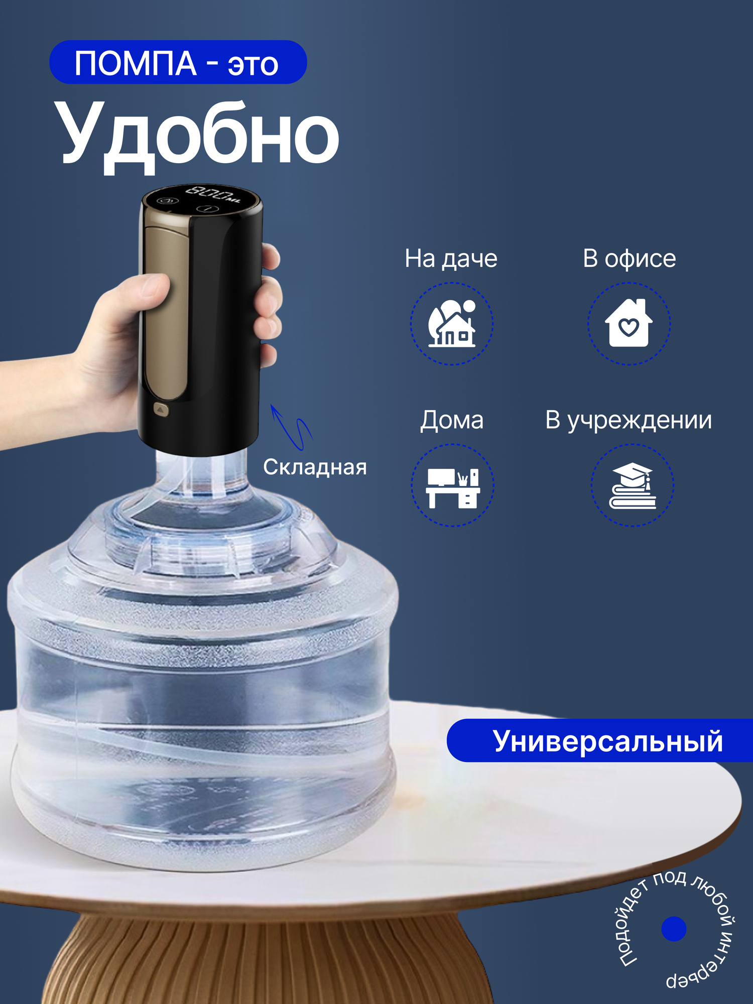 Помпа для воды электрическая, сенсорная, черно-золотистая, для бутыли 19 литров интересное: