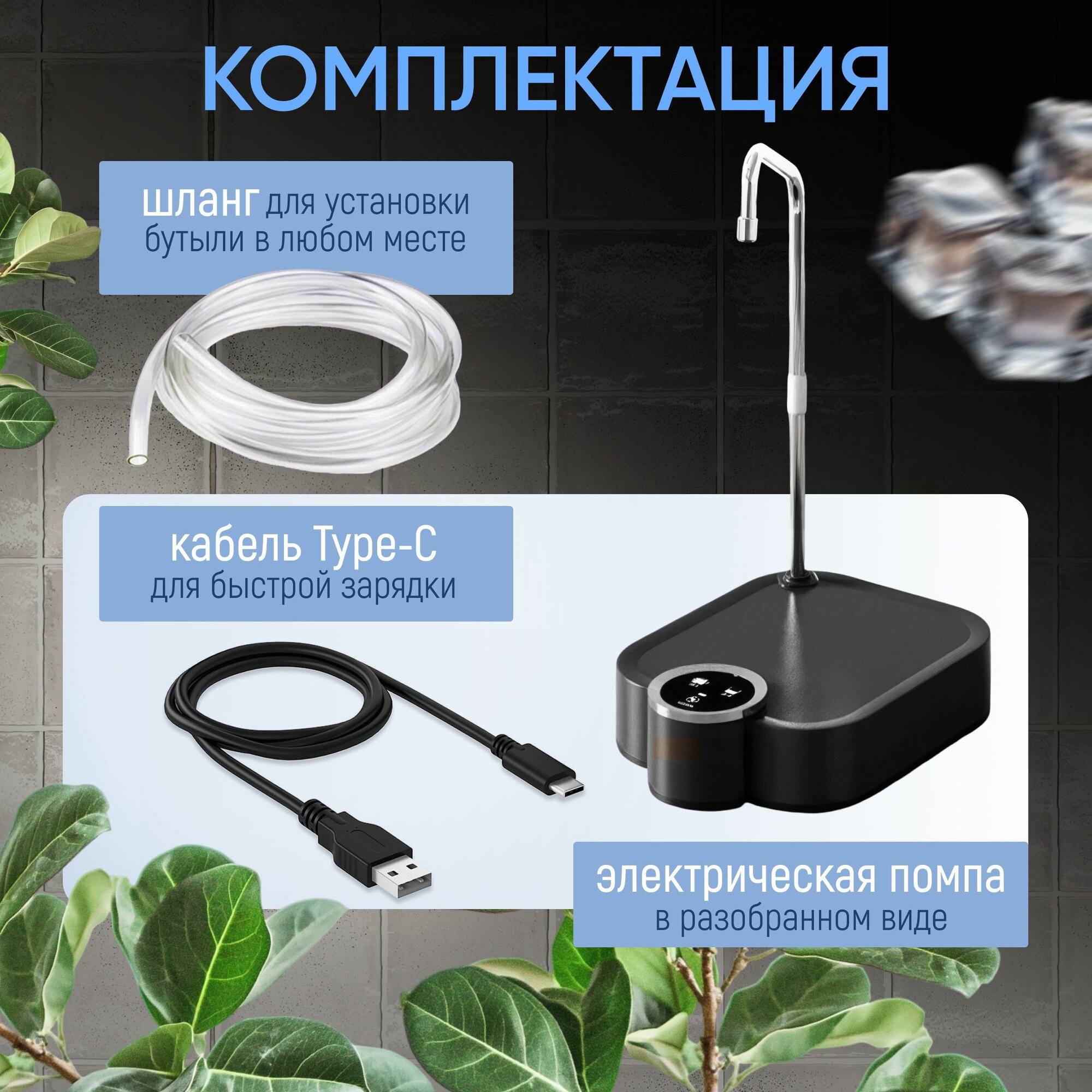 Помпа электрическая для воды 19л настольная D20, черная интересное: