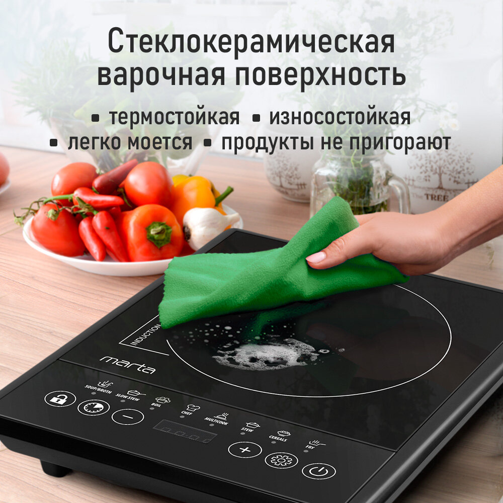 Плита индукционная электрическая MARTA MT-HP4232A безимпульсная черный интересное: