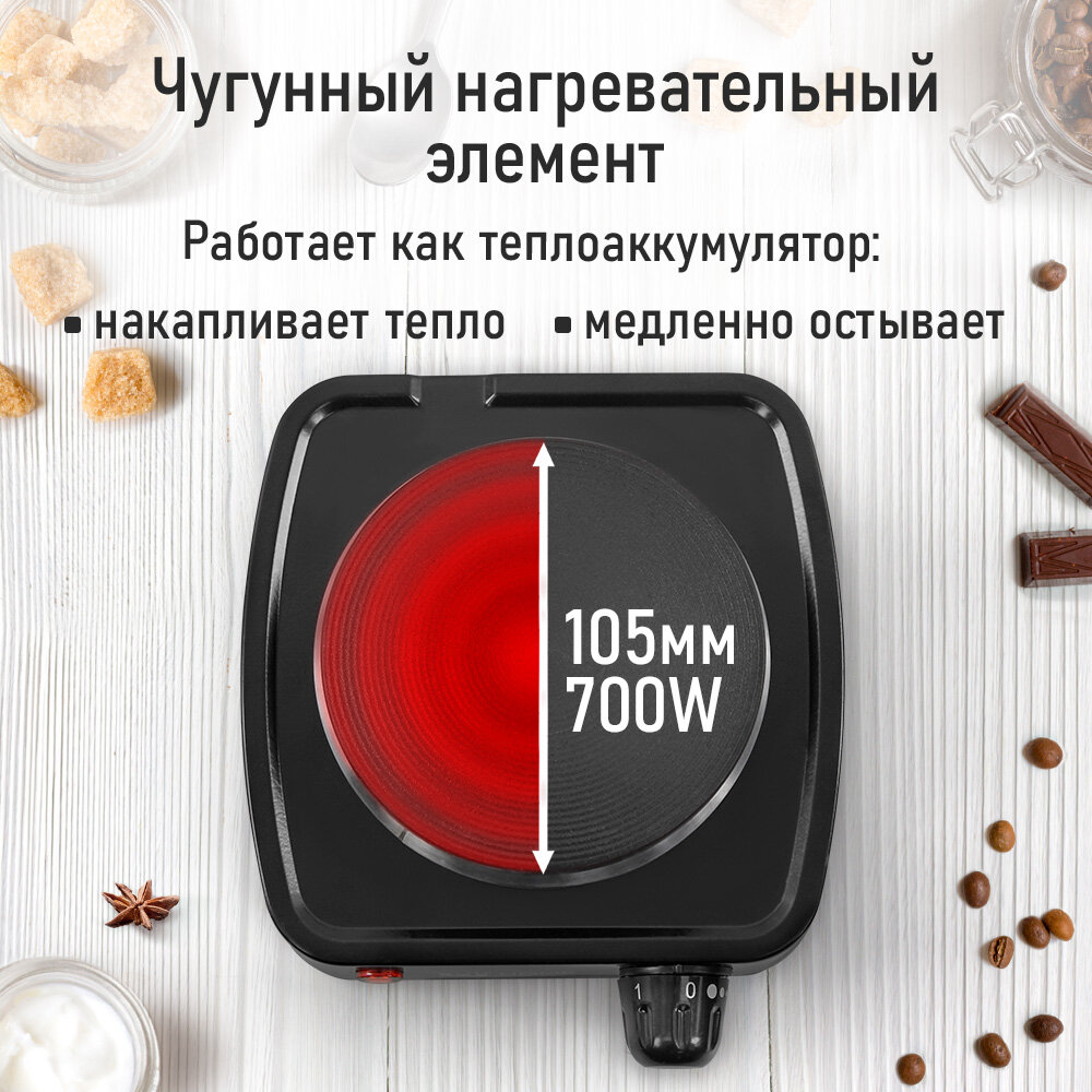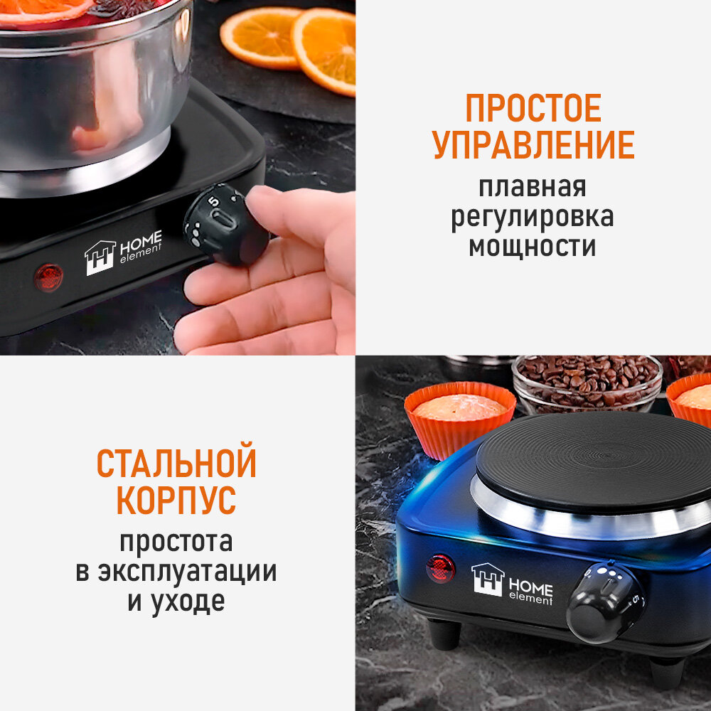 Электрическая плитка HOME ELEMENT HE-HP717A, варочная поверхность из чугуна, 700Вт, черная интересное: