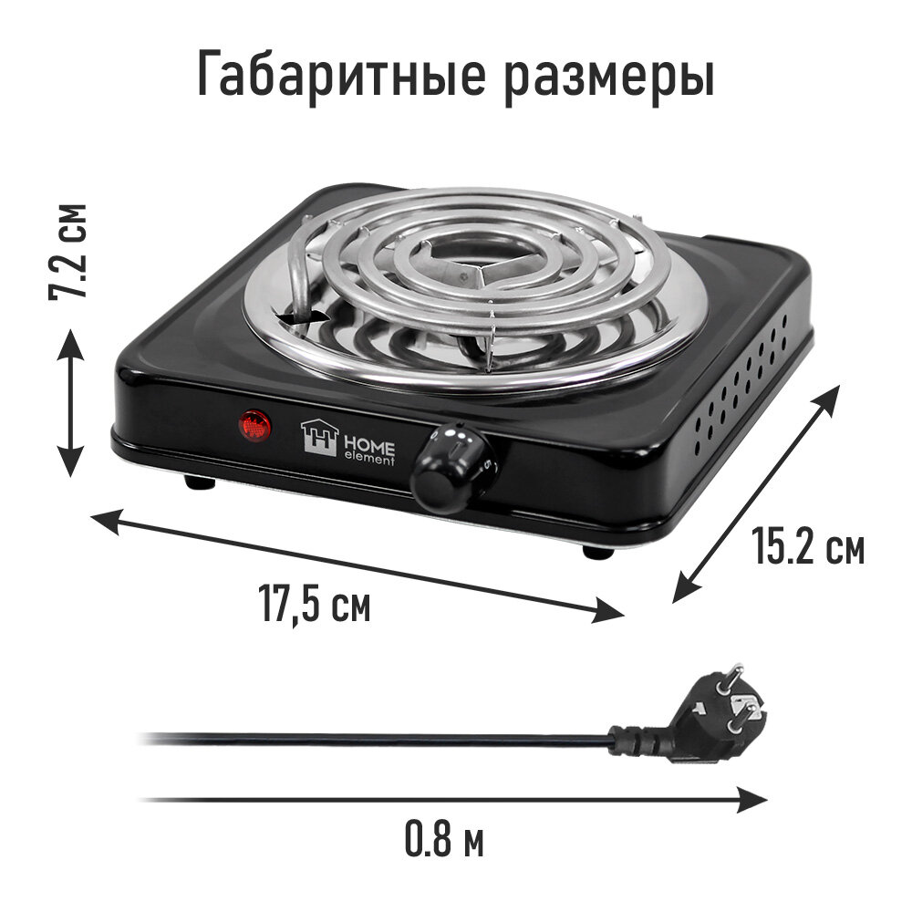 Электрическая плитка HOME ELEMENT HE-HP719B, 2000Вт, нержавеющая сталь, 14см интересное: