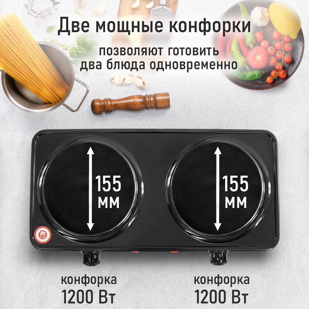 | Общее количество конфорок | 2 |