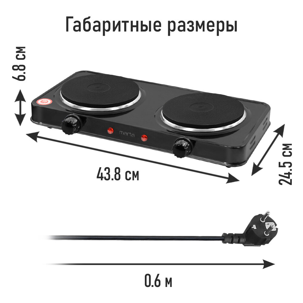 Электрическая плита MARTA MT-HP4234A, черная, настольная, нерж. сталь интересное:
