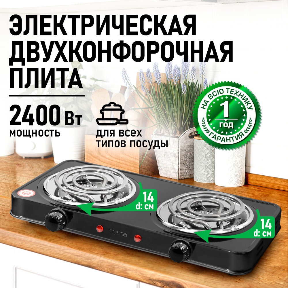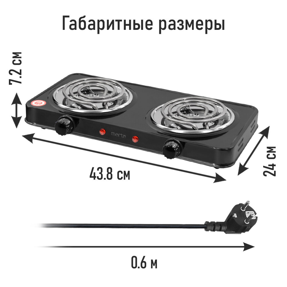 Плитка электрическая MARTA MT-HP4233A черный интересное: