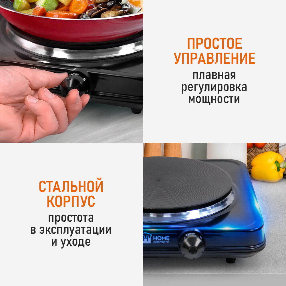 Электроплита HOME ELEMENT "HE-HP719", чугунная поверхность, чёрная интересное: