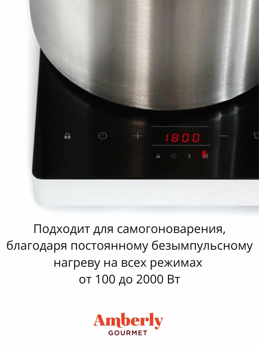 Индукционная плита Amberly Gourmet без импульсного режима, 2000 Вт (2 кВт), подходит для самогоноварения интересное: