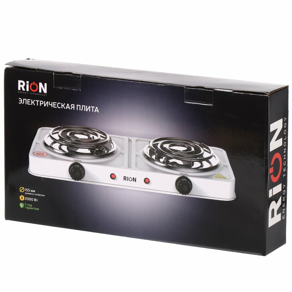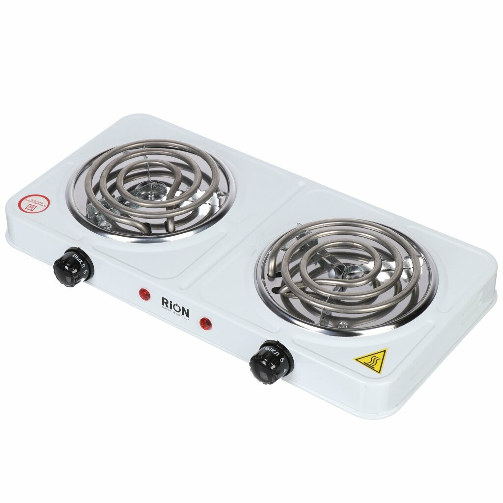 Купить Плита электрическая Rion, 2000 Вт, 2 конфорки, спираль, эмаль, механическая, переключатель поворотный, белая