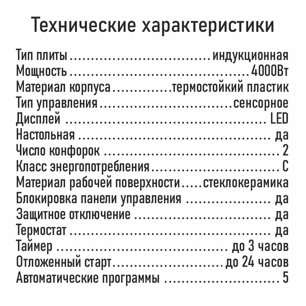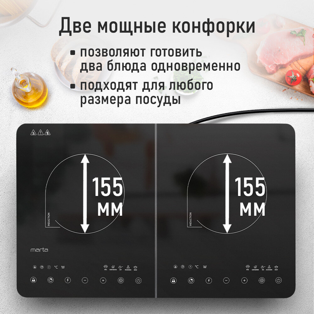Плита индукционная электрическая MARTA MT-HP4229A безимпульсная черный интересное: