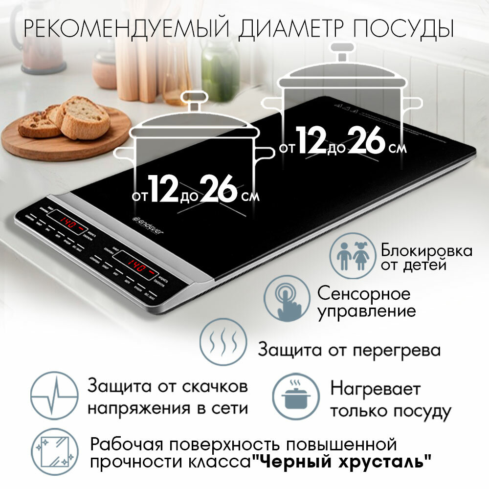 Индукционная плитка настольная ENDEVER Skyline IP-67 / 1800+1300 Вт / 10 уровней мощности интересное: