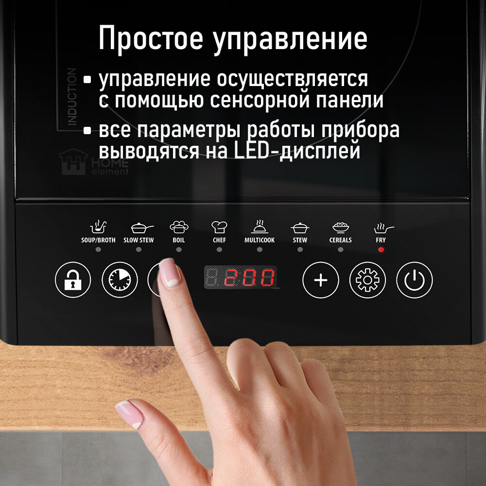 Плита индукционная электрическая HOME ELEMENT HE-HP711A безимпульсная черный интересное: