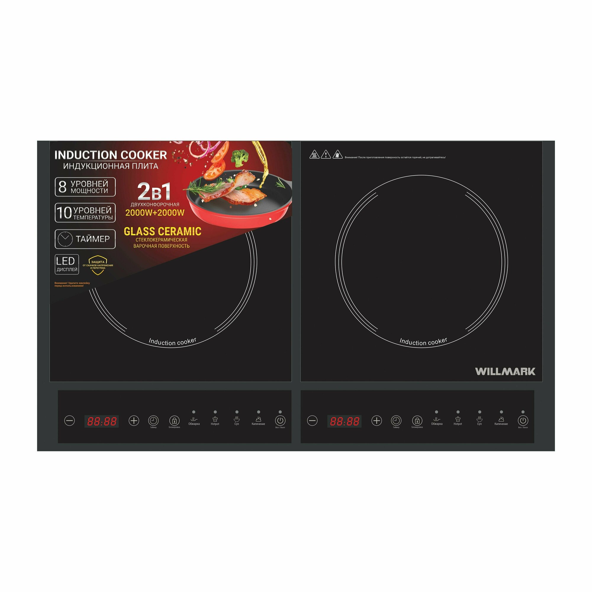 Купить Плита индукционная WILLMARK WIP-2840B (2000+2000Вт, 2 конф,10 ур. темп,8 прогр, GLASS CERAMIC)