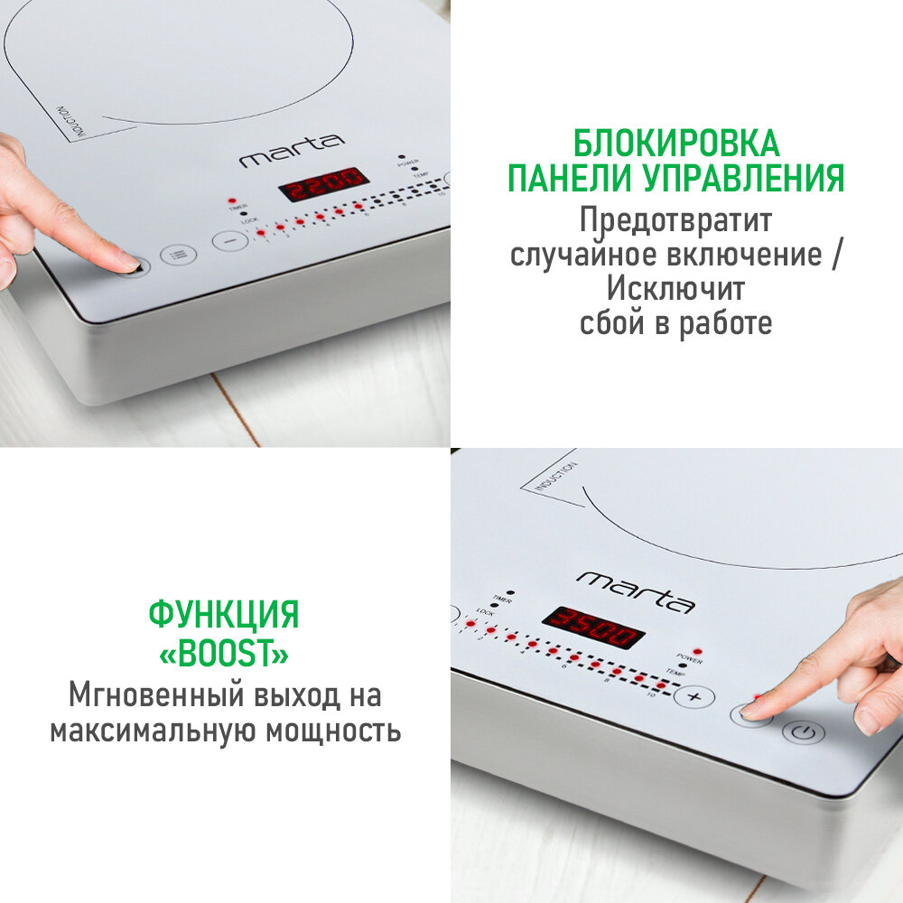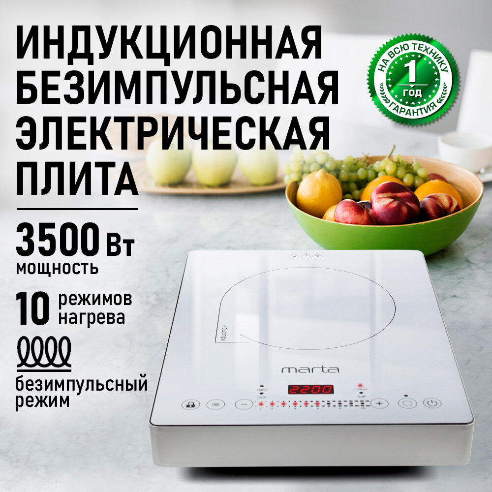 Плита индукционная электрическая MARTA MT-4221 безимпульсная белый жемчуг интересное: