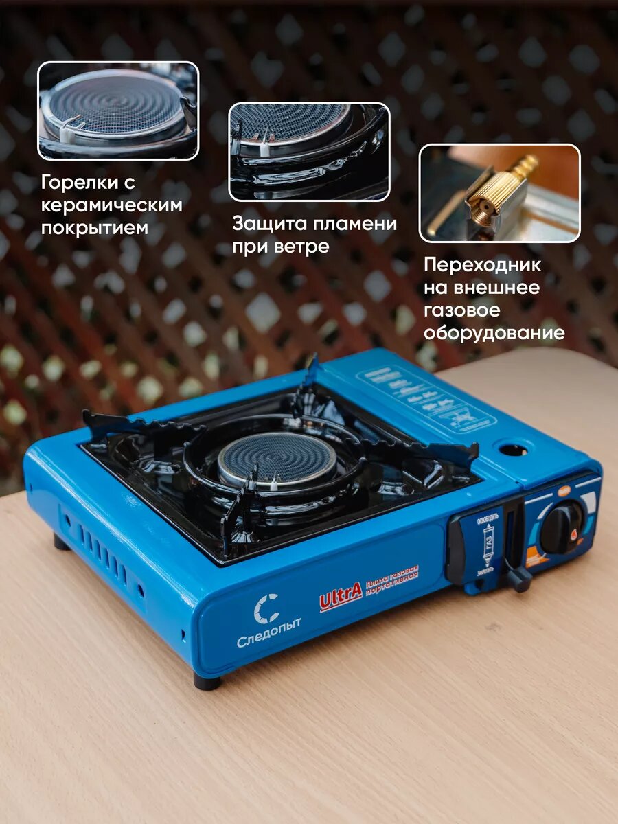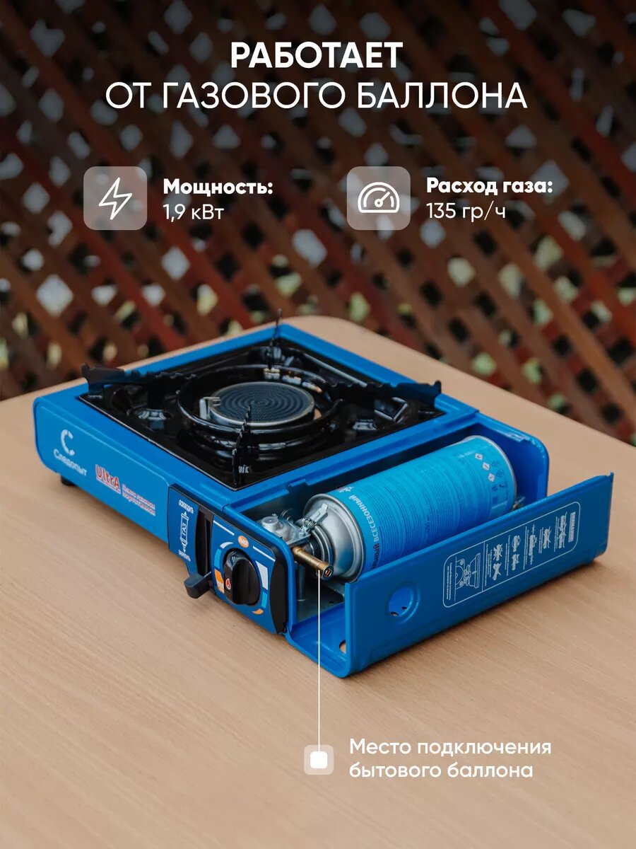 Газовая плита туристическая, походная газовая плита, UltraEfect с переходником, плита керамическая, дачная в кейсе