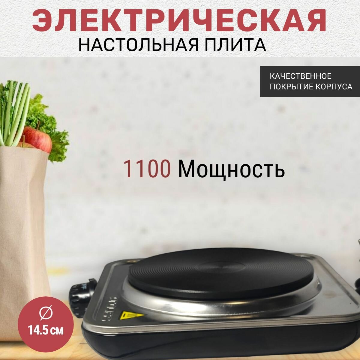 Плита электрическая 1 конфорочная, диск,1100W интересное: