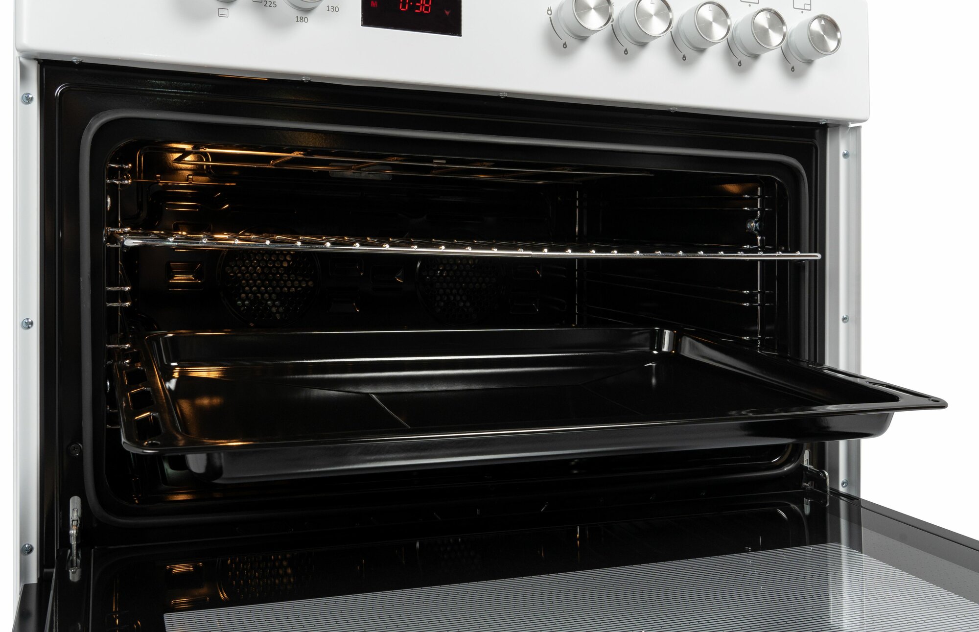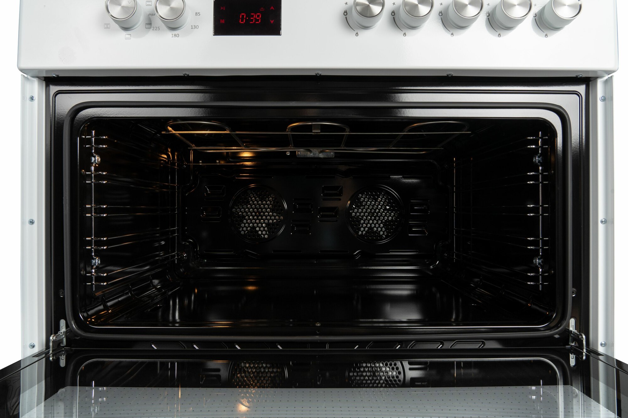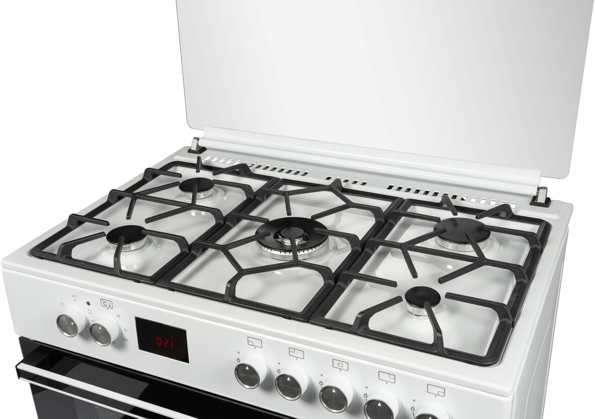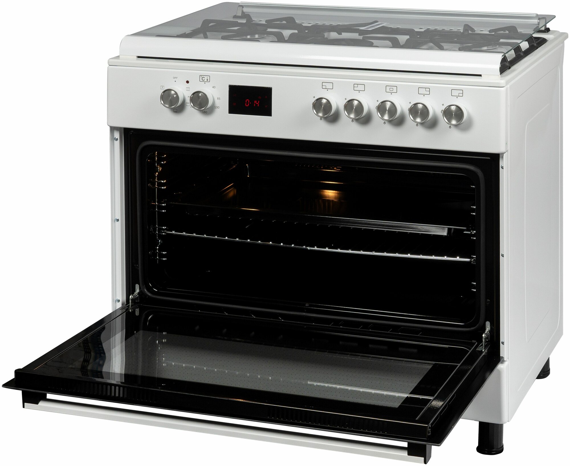 | Особенности конструкции | дисплей / подсветка духовки / часы / чугунные решетки / эмаль легкой чистки / ящик для посуды |