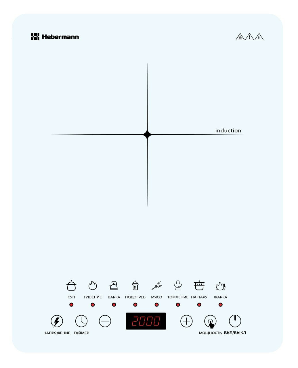 Плитка индукционная настольная электрическая Hebermann HBIC 1103. 2000 Вт, 8 автопрограмм, таймер, сенсорное управление, белая матовая. интересное: