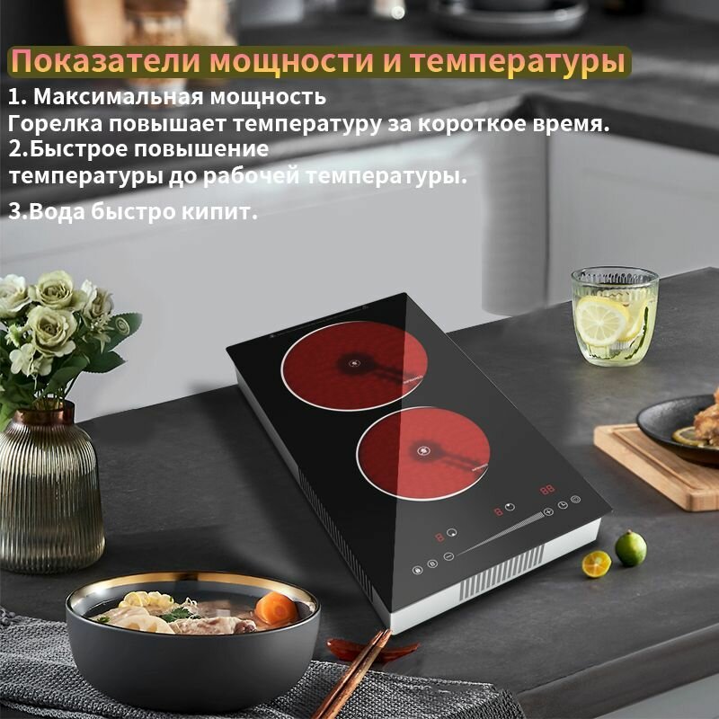 Инфракрасная настольная электрическая плита / 2 конфорки 7 автоматических программ 9 уровней нагрева интересное: