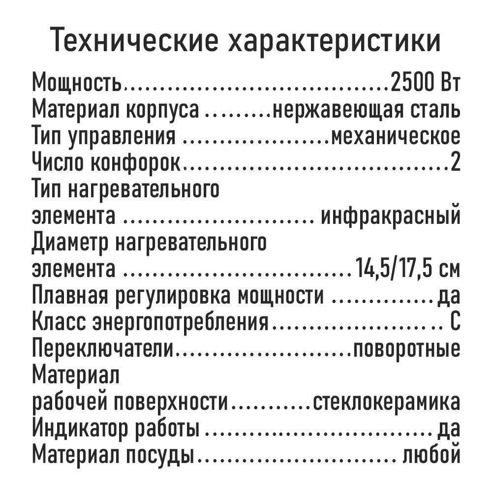 | Общее количество конфорок | 2 |