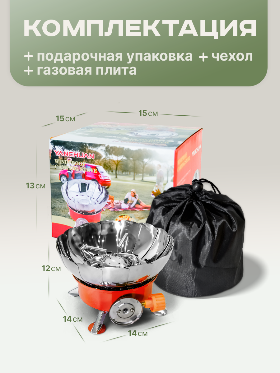 Туристическая газовая плитка 3.5 кВт , портативная походная газовая плита (без баллона)