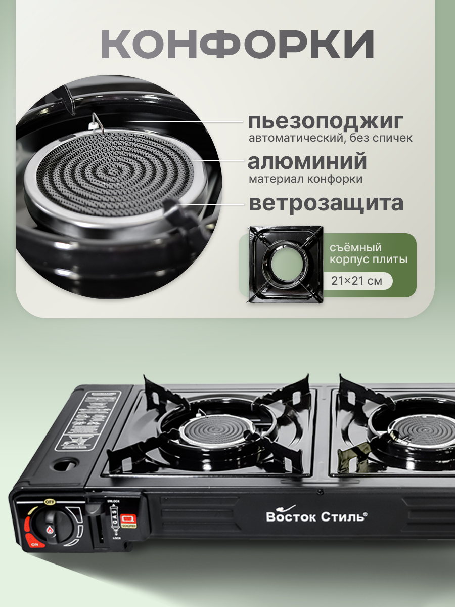 Ниже Вы можете прочитать отзывы на Туристическая газовая плитка 2 керамические конфорки, ознакомится с подробными характеристиками, посмотреть интересные обзоры и фотографии на Туристическая газовая плитка 2 керамические конфорки.