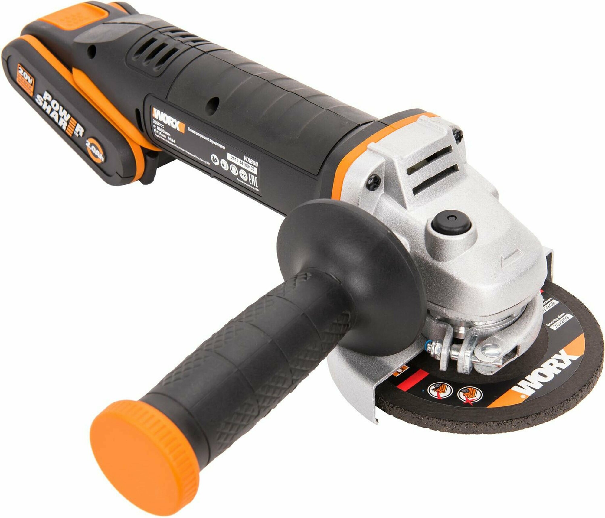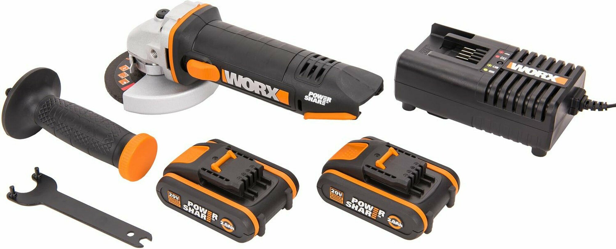 Угловая шлифмашина аккумуляторная WORX WX800, 115 мм, 20 В, АКБ x 2 2,0 А*ч, ЗУ 2,0 A, кейс