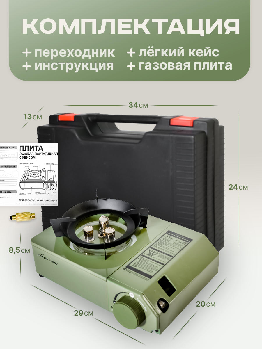 Туристическая газовая плитка, портативная походная газовая плита с переходником в кейсе (без баллона)