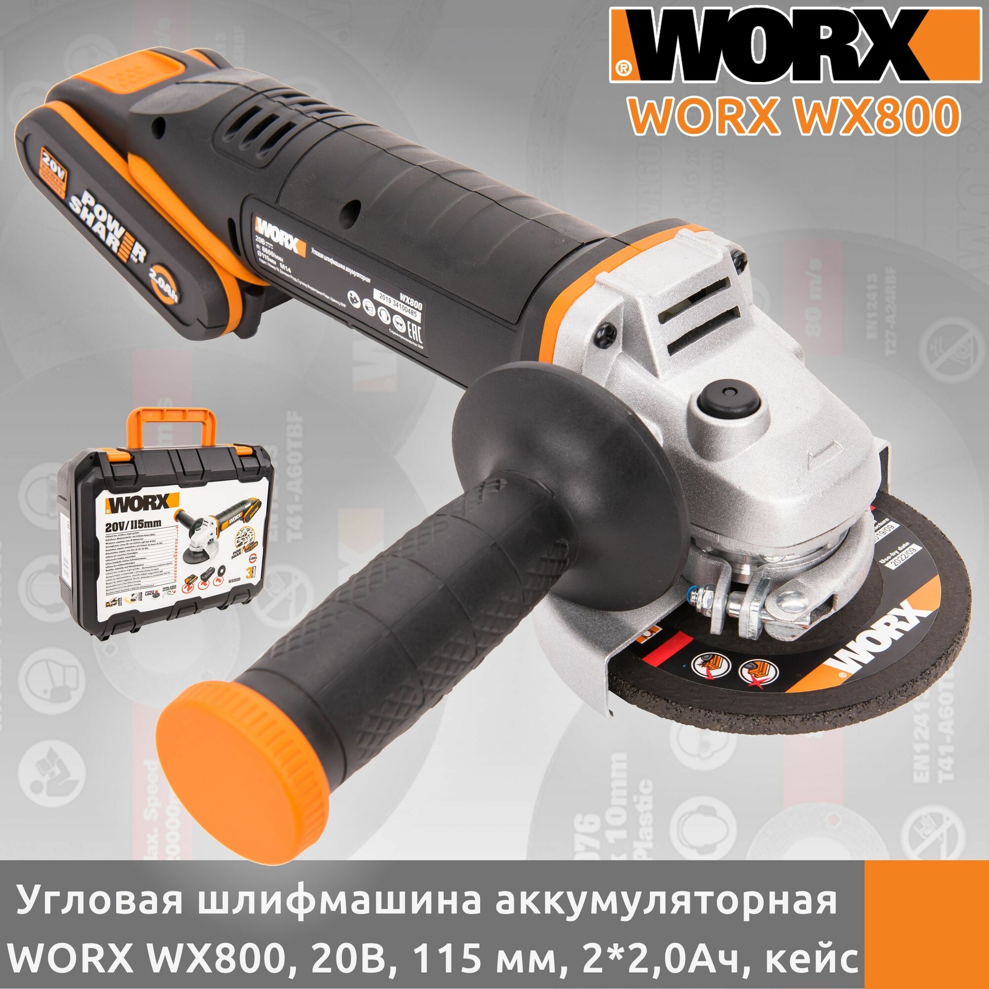 Угловая шлифмашина аккумуляторная WORX WX800, 115 мм, 20 В, АКБ x 2 2,0 А*ч, ЗУ 2,0 A, кейс