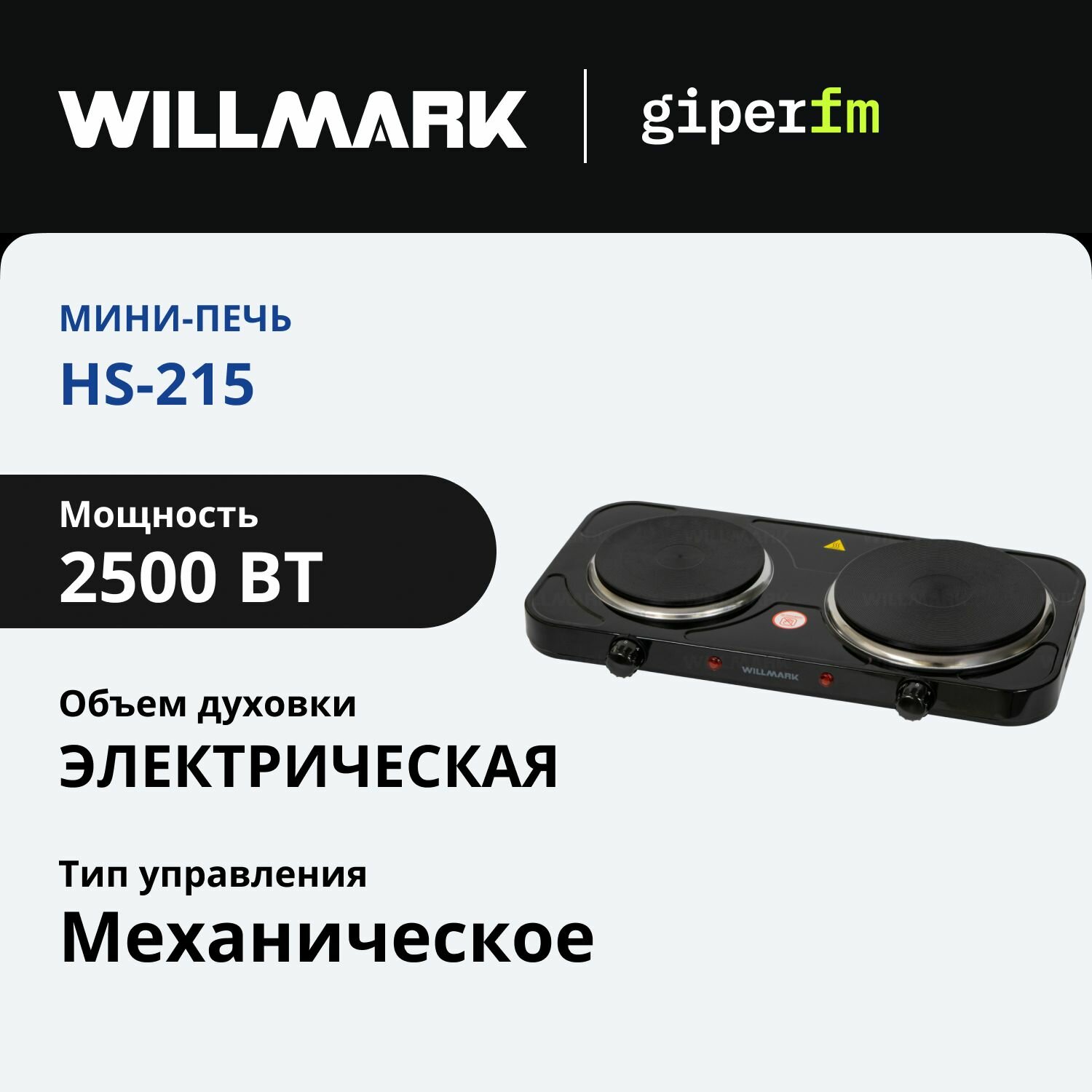 Купить Плитка настольная электрическая WILLMARK HS-215, 2500 Вт, 2 конфорки, индикатор включения, эмалированная сталь, черный